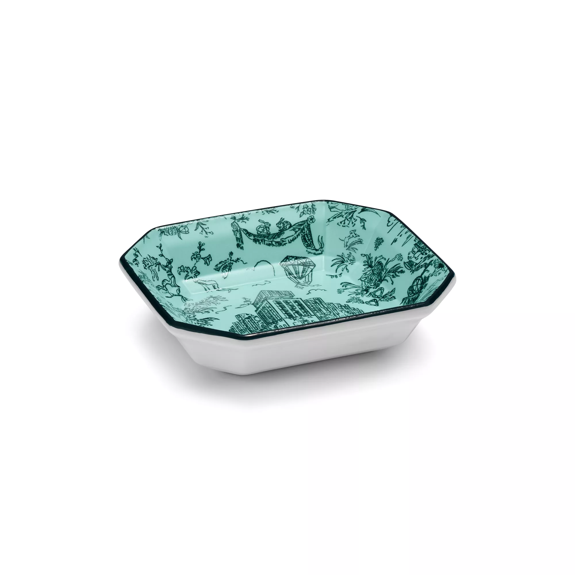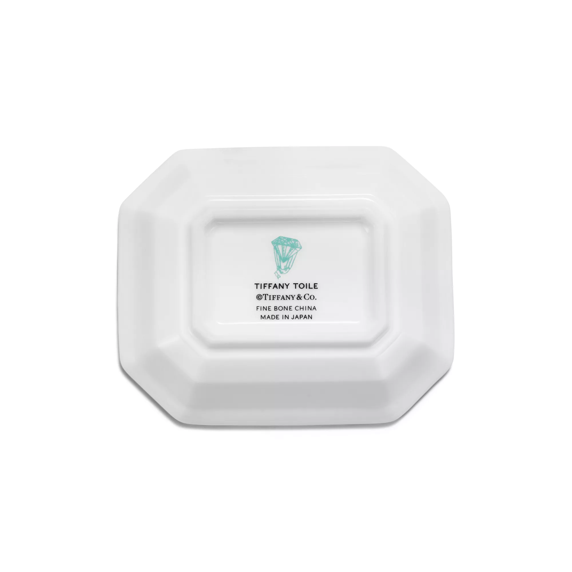 Le creazioni Tiffany Toile sono un estroso omaggio alla città di New York e alla sua tradizione. Divertente e allo stesso tempo elegante, il disegno si ispira a un’illustrazione della città di New York degli Archivi Tiffany. Il Ponte di Brooklyn con Bird on a Rock, la Statua della Libertà e al centro un diamante Tiffany & Co. Questo set di quattro svuotatasche multicolore è caratterizzato da una stampa elaborata e da un bordo in oro dipinto a mano.