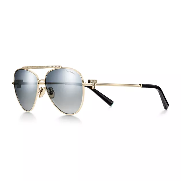 Ritorna l’iconico motivo della Maison. Gli occhiali da sole T by Tiffany sono caratterizzati da uno straordinario design delle aste ispirato alla nostra lettera preferita. Questo paio di occhiali da sole T by Tiffany è realizzato in metallo dorato chiaro con lenti Pilot a specchio sfumate blu e argento.