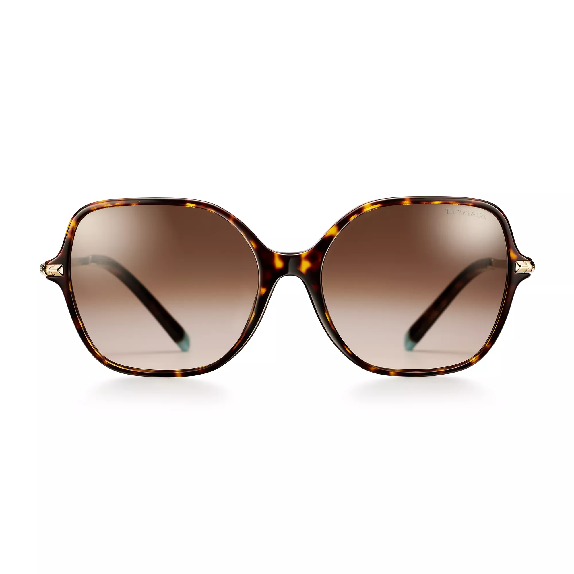 La collezione Wheat Leaf combina un design moderno con un motivo degli archivi Tiffany. In questi occhiali da sole moderni il motivo Wheat Leaf è riproposto nella forma di uno splendido dettaglio in metallo dorato chiaro. E’ una montatura leggermente oversize realizzata con cura in acetato tartarugato con lenti sfumate marroni e dettagli Tiffany Blue®.