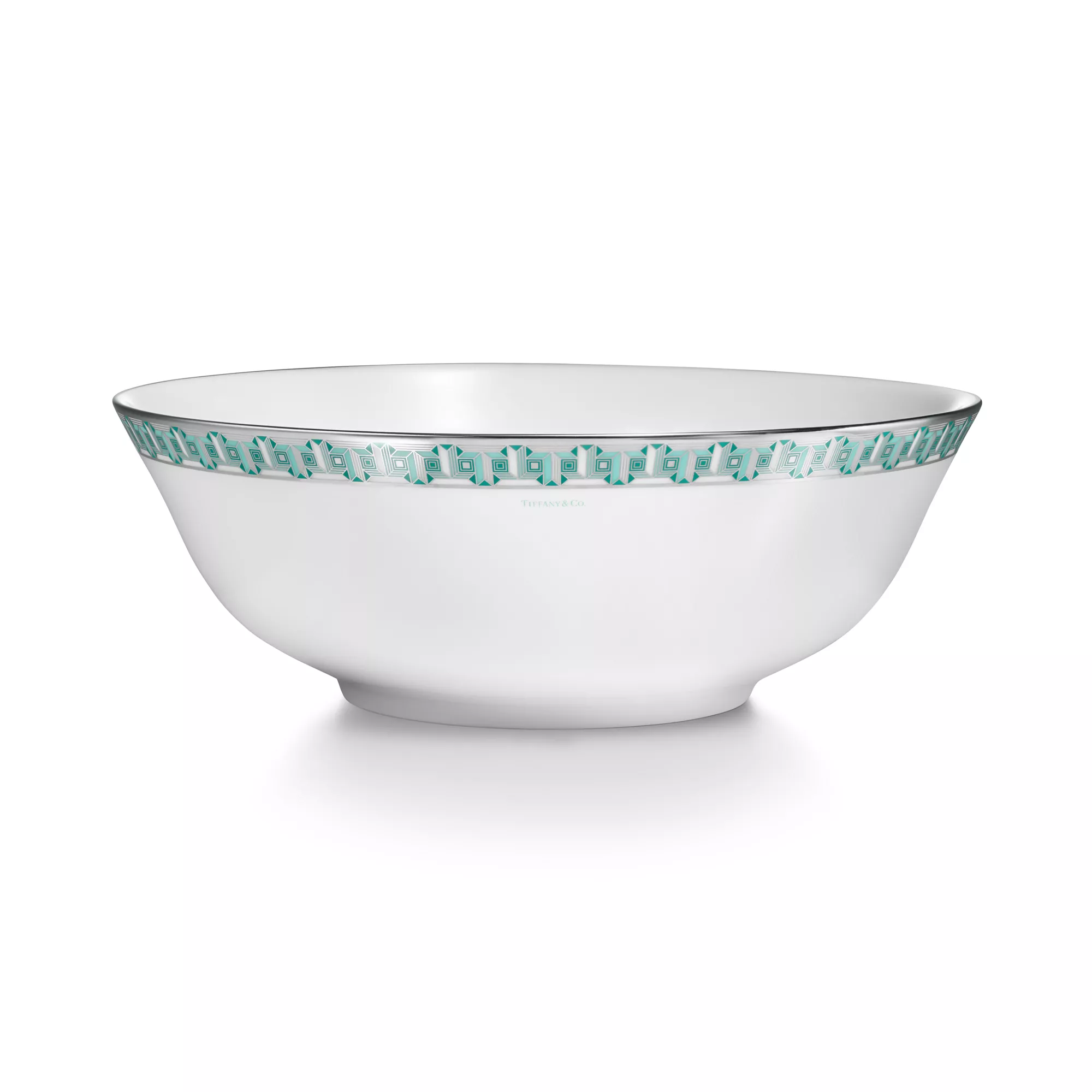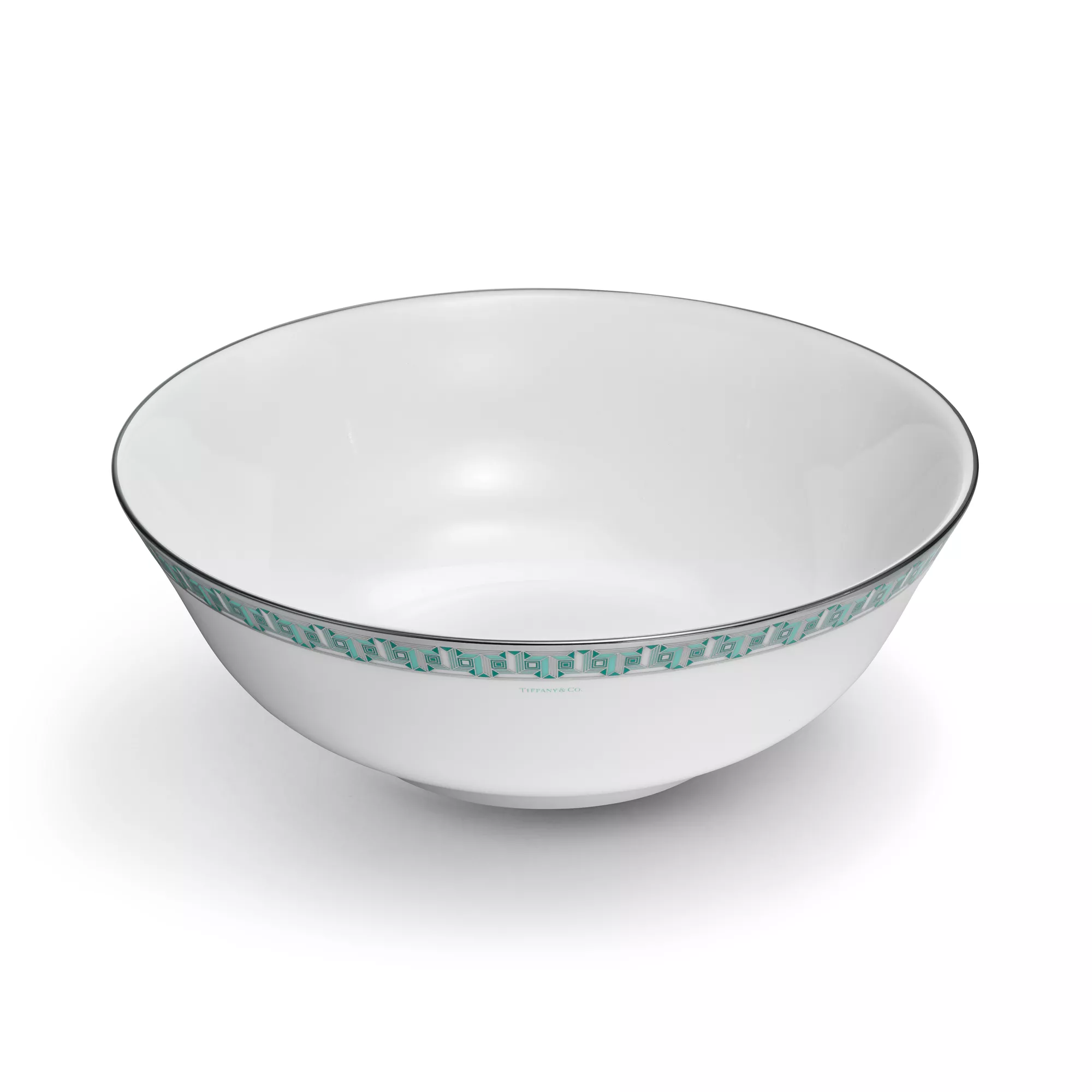 Ispirato all’omonima collezione di gioielli, il servizio di piatti Tiffany T True fa risplendere la tua tavola. Realizzata in porcellana di Limoges, questa insalatiera è decorata con un’interpretazione geometrica del motivo Tiffany T True e presenta un bordo in platino dipinto a mano. Da abbinare agli articoli della collezione Tiffany T True per un look coordinato o ad altre collezioni Tiffany Home.