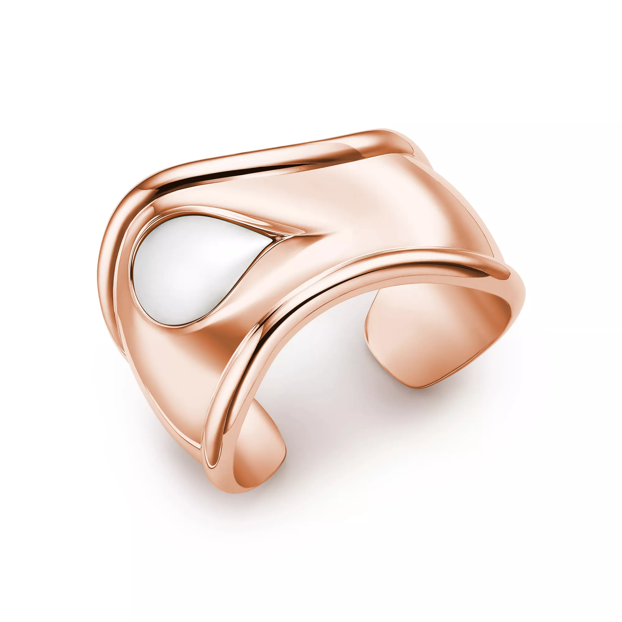 Collezione Elsa Peretti® Bracciale Bone piccolo in oro rosa con giada nefrite bianca
