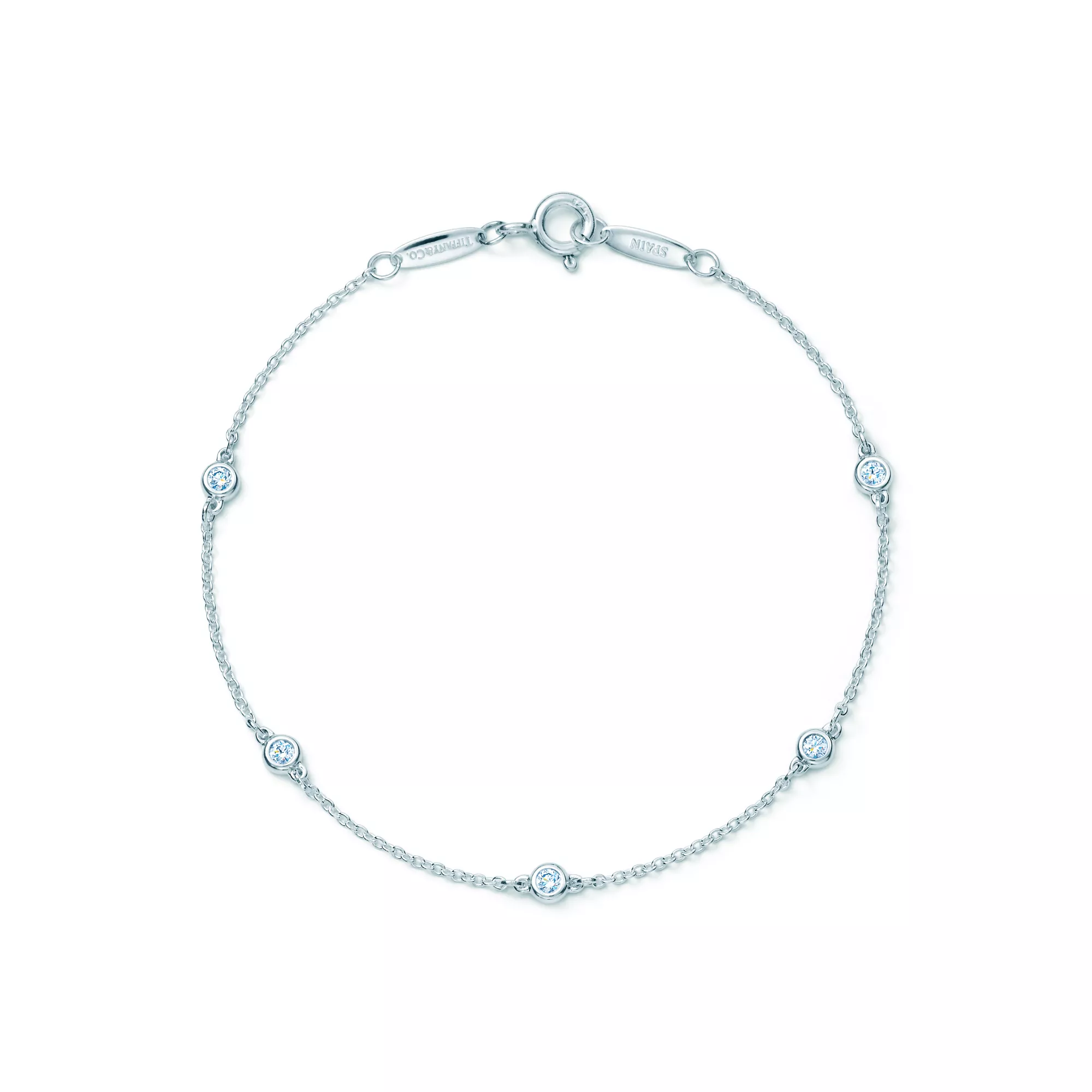 Bracciale con diamanti tondi taglio brillante in argento, lunghezza 178 mm. Peso complessivo in carati 0,15. Modelli originali di Elsa Peretti coperti da copyright.