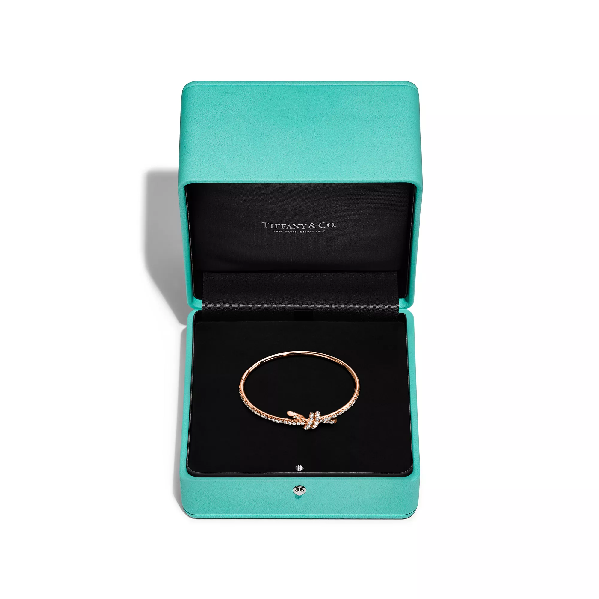 La collezione Knot by Tiffany è l’espressione del potere indissolubile dell’amore. Ispirata a un design d’archivio del 1889, la collezione Knot by Tiffany è il simbolo dei legami della vita che durano nel tempo e delle relazioni importanti. Questo bracciale in oro rosa è stato lucidato a mano per farlo risplendere in modo straordinario. Ogni diamante taglio brillante, scelto con cura per soddisfare gli elevati standard di Tiffany, è incastonato a mano con un’angolazione precisa per esaltarne al massimo la luminosità. Indossa questo bracciale da solo o insieme a modelli classici per creare un abbinamento originale.