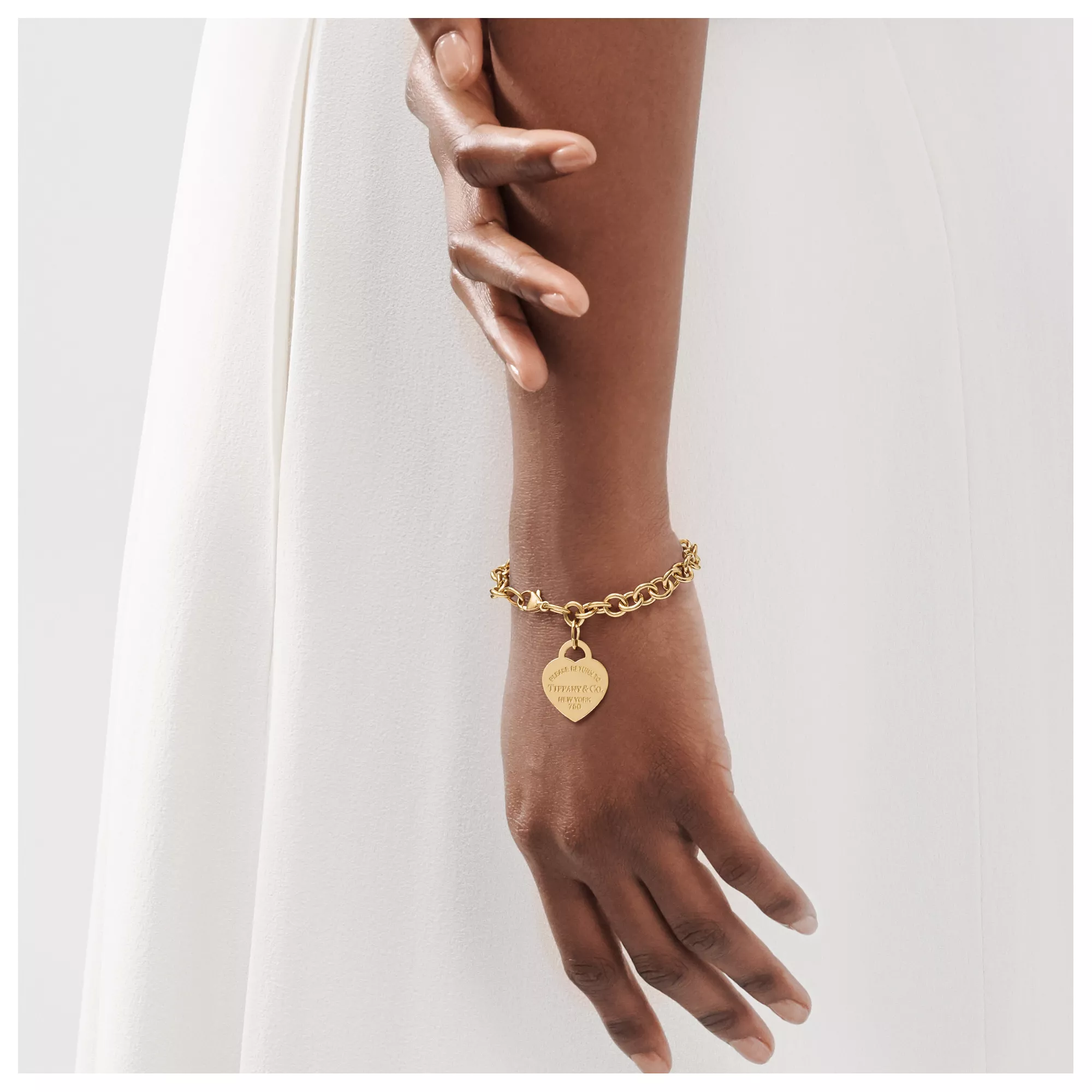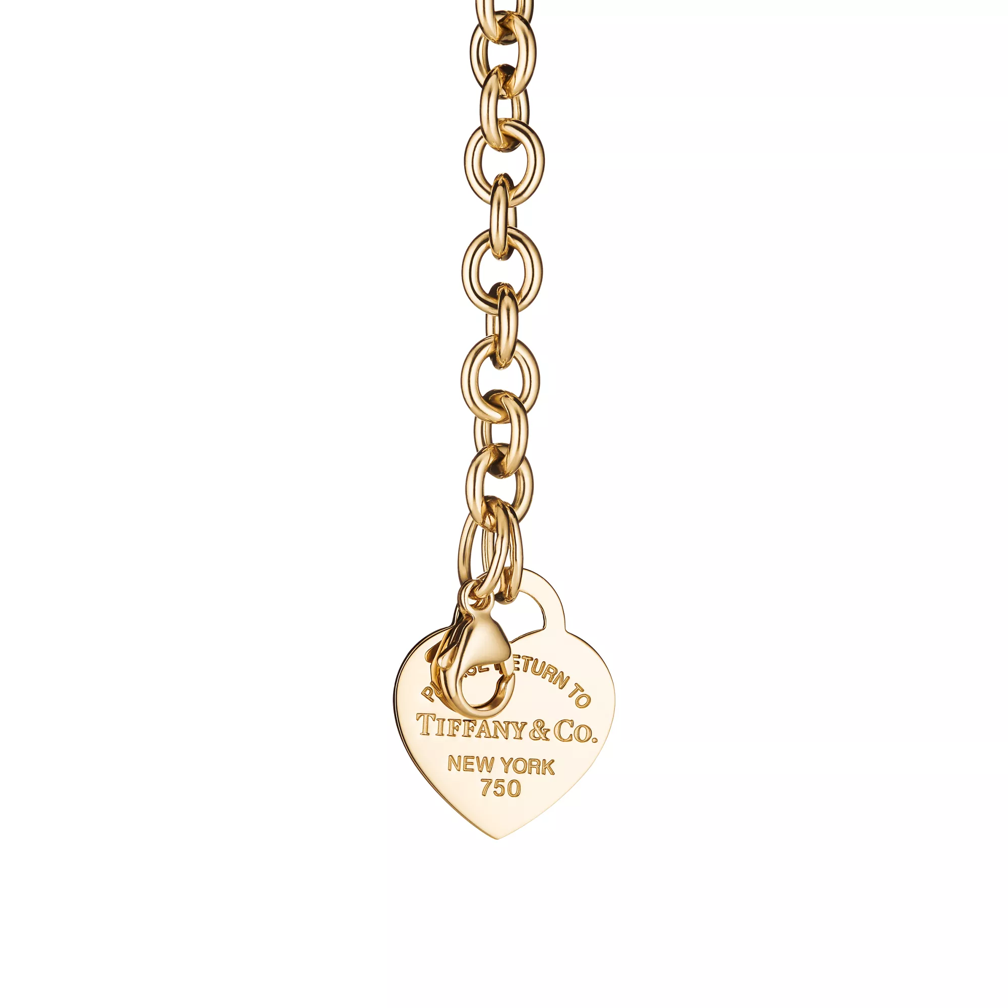 Questo bracciale con ciondolo che continua ad avere grande successo è caratterizzato da maglie importanti con l’inconfondibile piastrina a cuore. Ispirata all’iconico portachiavi presentato per la prima volta nel 1969, la collezione Return to Tiffany™ è un classico reinventato. Puoi indossarlo insieme ad altri modelli in oro.