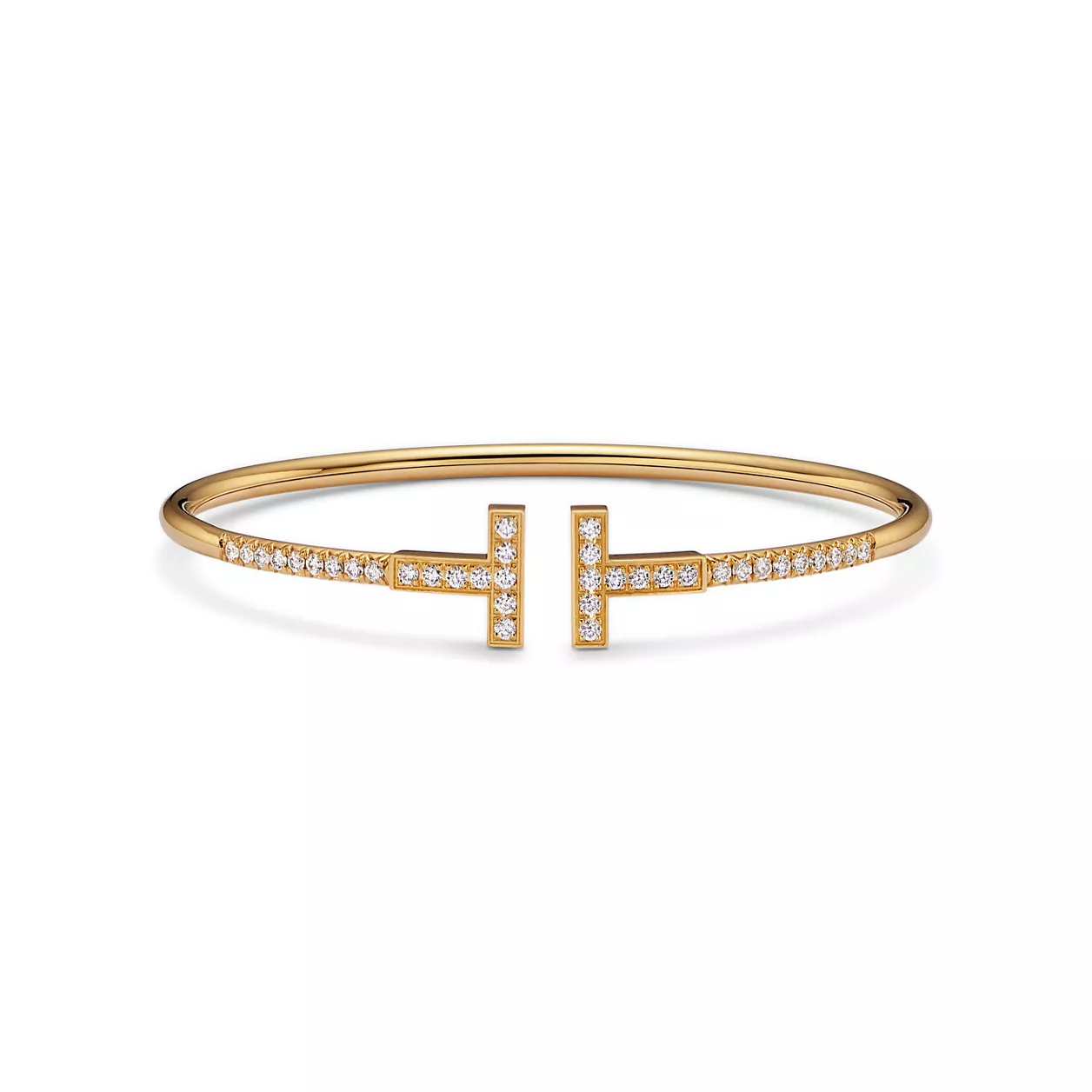 Collezione Tiffany T Bracciale Wire con pavé di diamanti in oro giallo