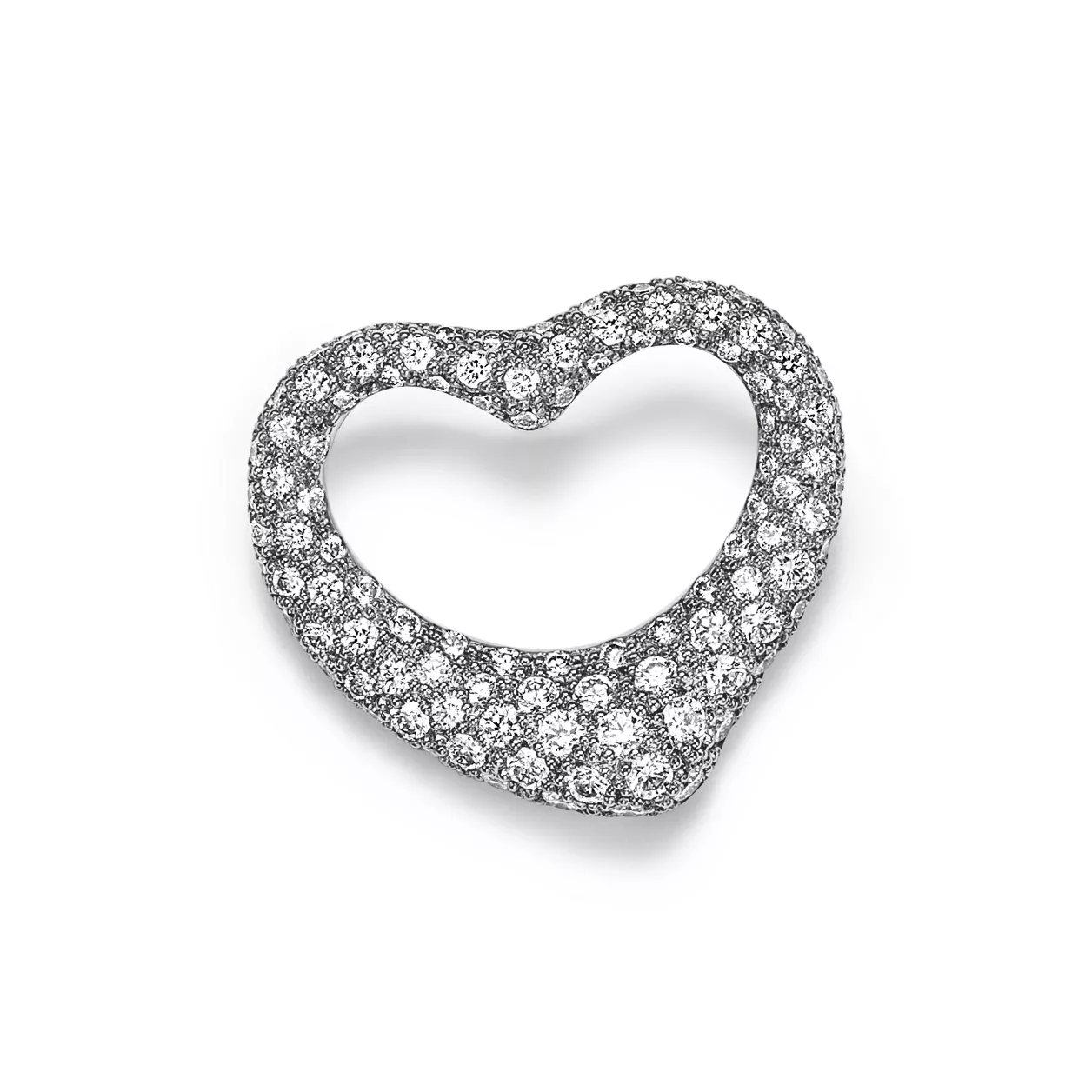 La forma semplice ed evocativa dei modelli della Collezione Open Heart di Elsa Peretti celebra lo spirito dell’amore. Questa elegante creazione magistralmente realizzata in platino con pavé di diamanti incastonati a mano è tra i suoi gioielli più iconici. Puoi indossare questa spilla sul colletto della camicia o sul revers della giacca per un look che si fa decisamente notare.