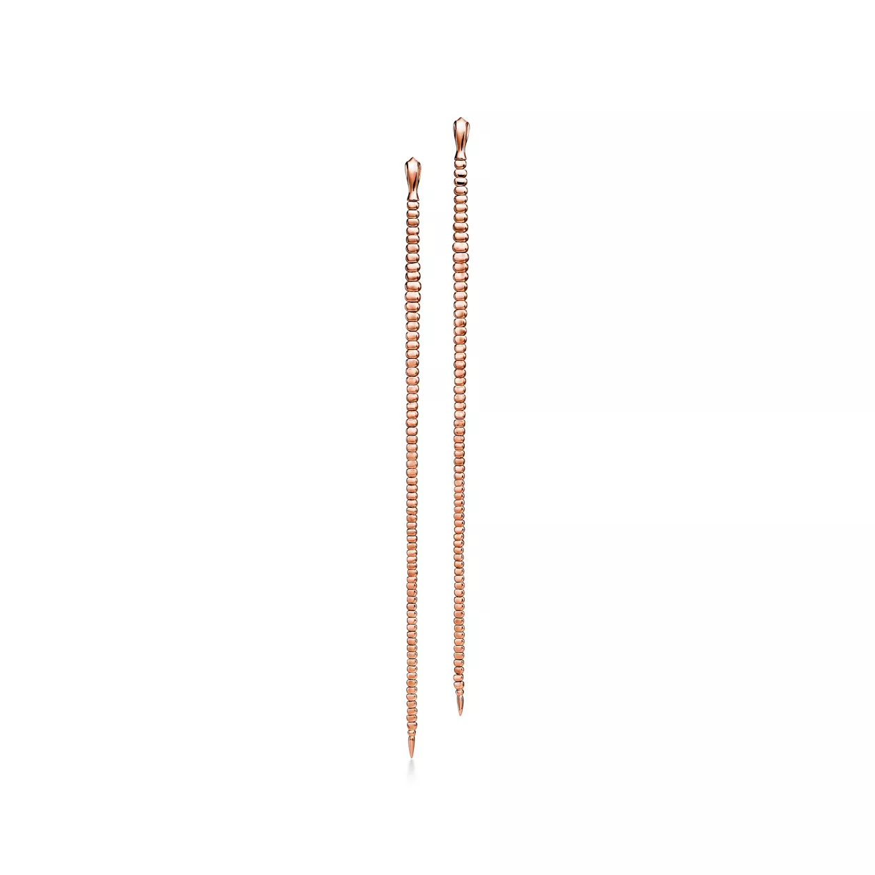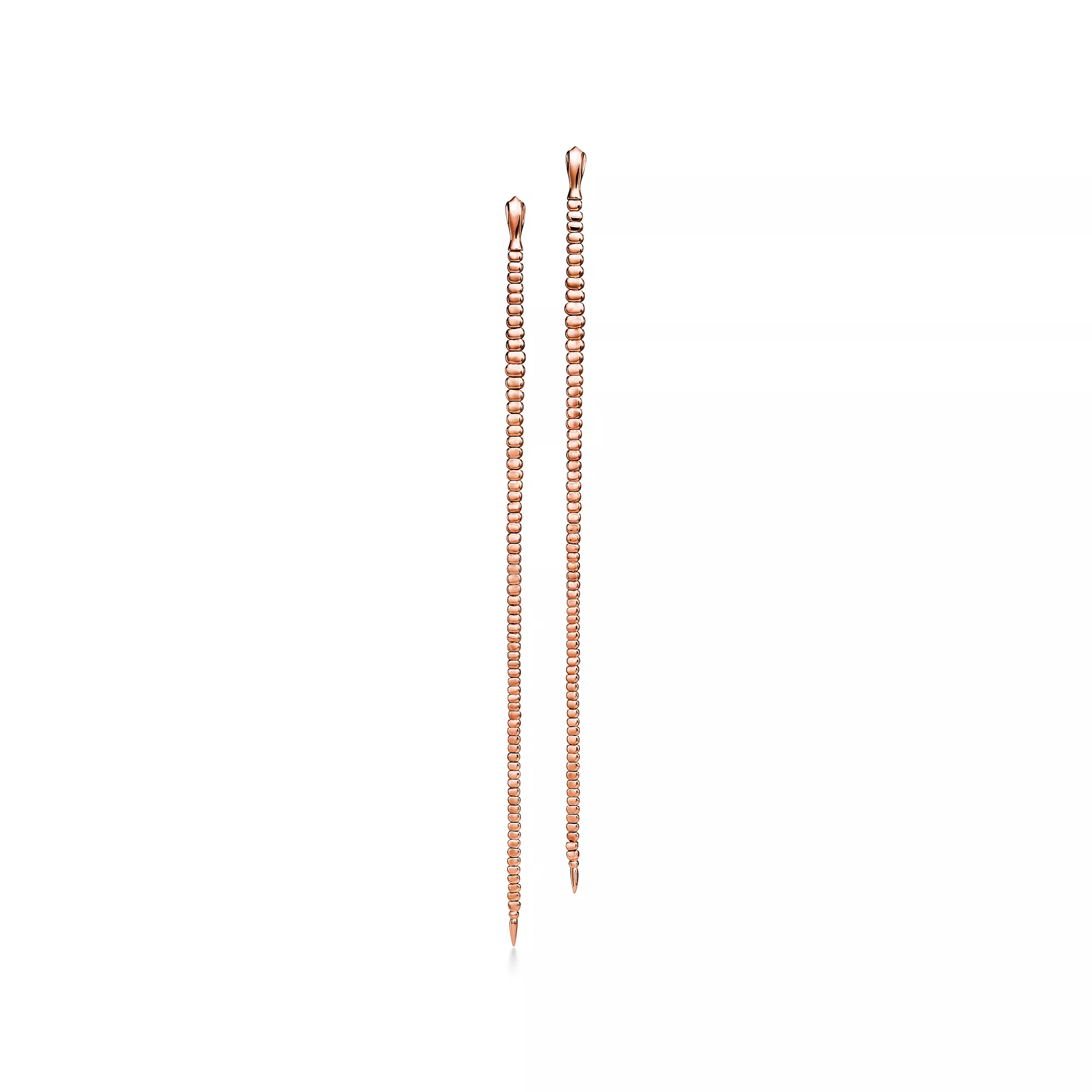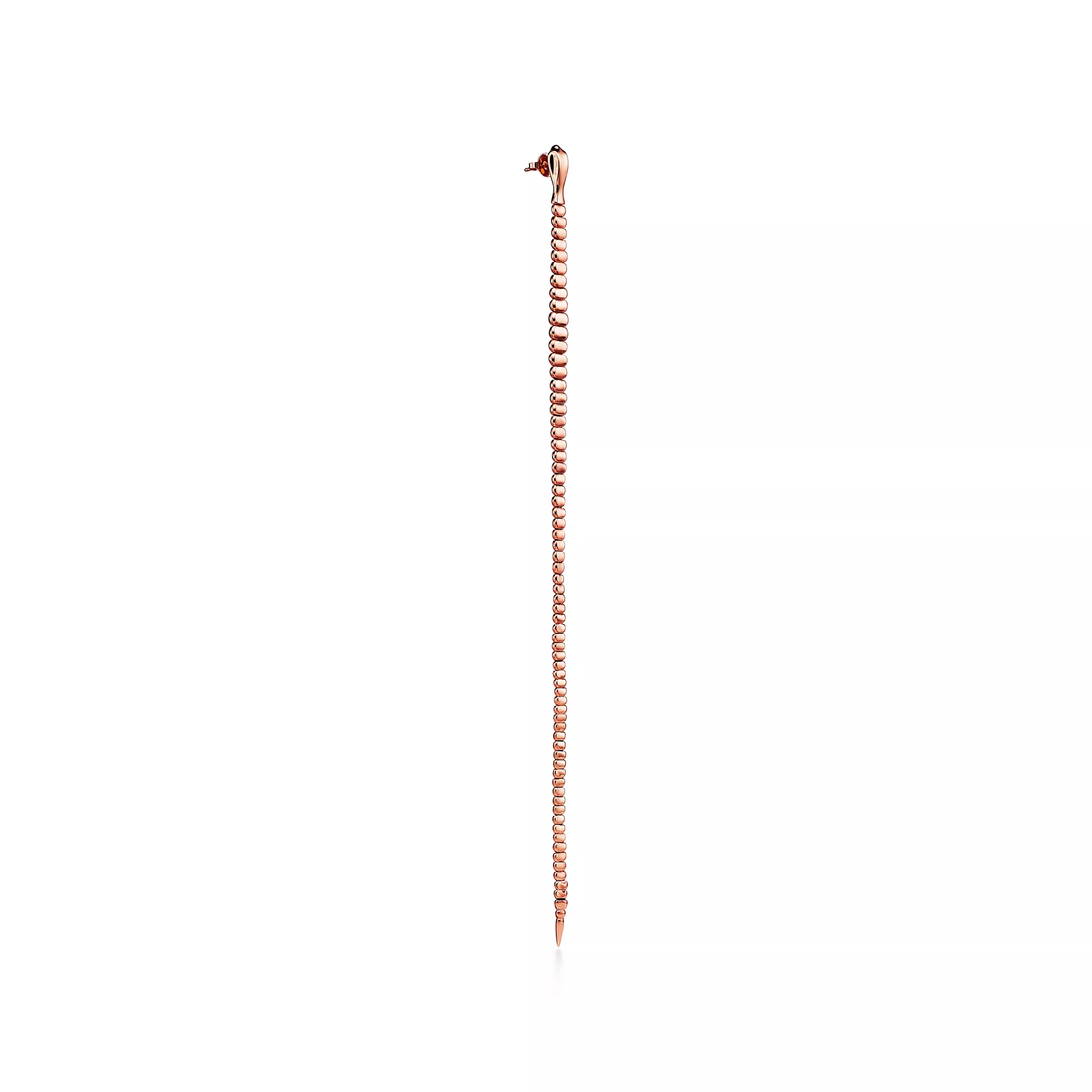 I modelli Snake della collezione Elsa Peretti® sono ispirati a un portafortuna regalato all’artista. La genialità del design e la forma sinuosa del serpente realizzata con maestria conferiscono grande fluidità al gioiello, che si adatta in modo naturale a chi lo indossa. Indossa questi affascinanti orecchini in oro rosa da soli per un look di grande effetto.