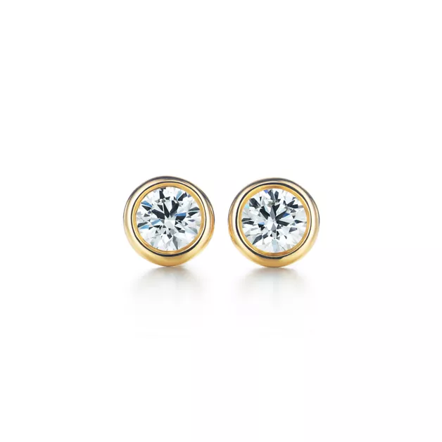 I diamanti tondi Tiffany catturano la luce e la fanno vibrare. Orecchini in oro 18 carati con diamanti tondi taglio brillante, per lobi forati. Modelli originali di Elsa Peretti coperti da copyright.
