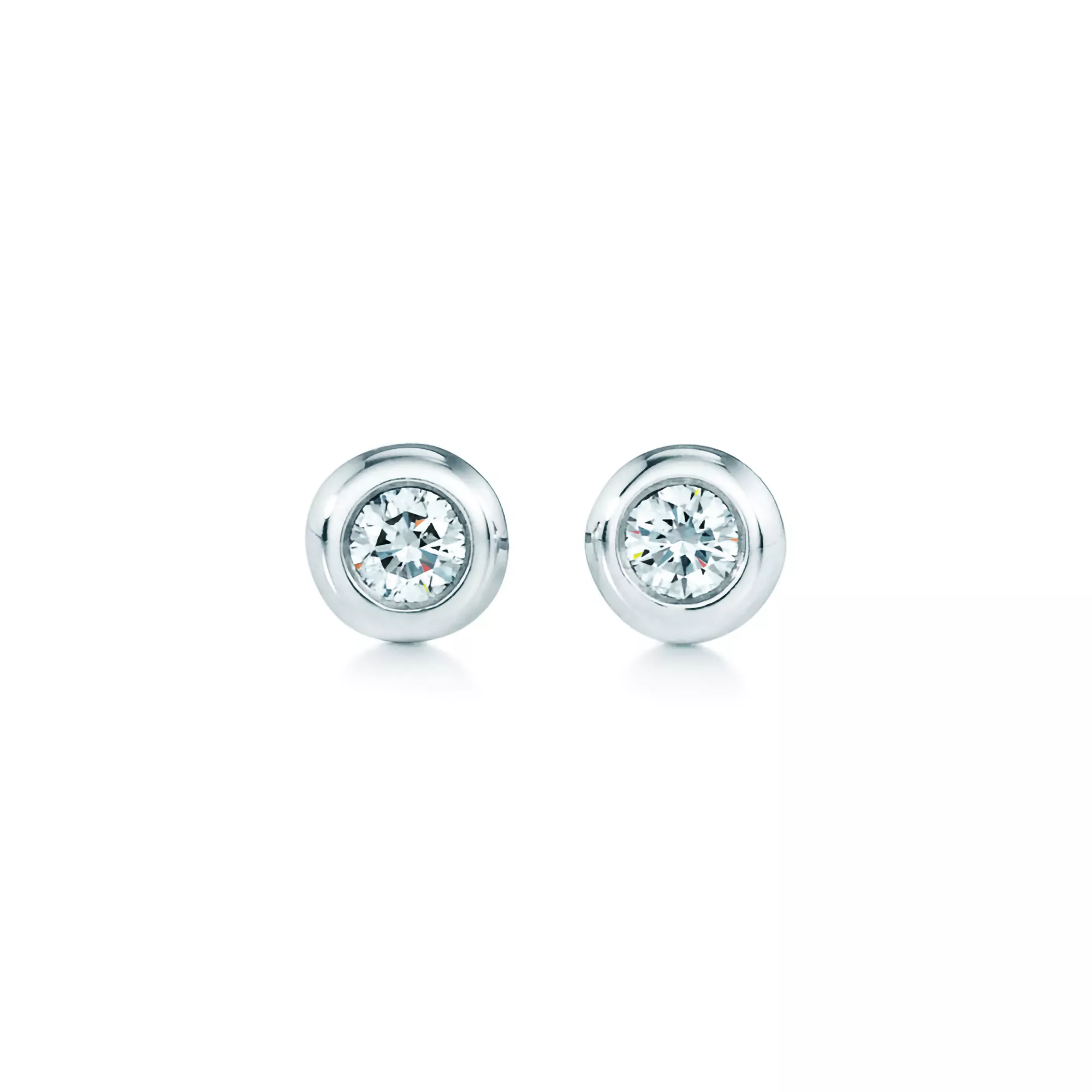 I diamanti tondi Tiffany catturano la luce e la fanno vibrare. Orecchini con diamanti tondi taglio brillante in argento, per lobi forati. Modelli originali di Elsa Peretti coperti da copyright.