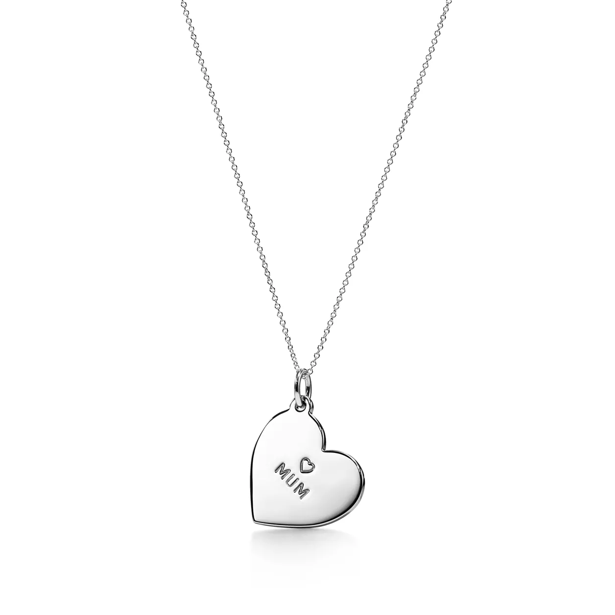 Ispirata ai cartellini dei prezzi degli archivi Tiffany, questa collana con pendente in argento presenta un ciondolo a cuore inciso con la parola “mum” (mamma). È uno splendido regalo per tutte le mamme e le figure materne.