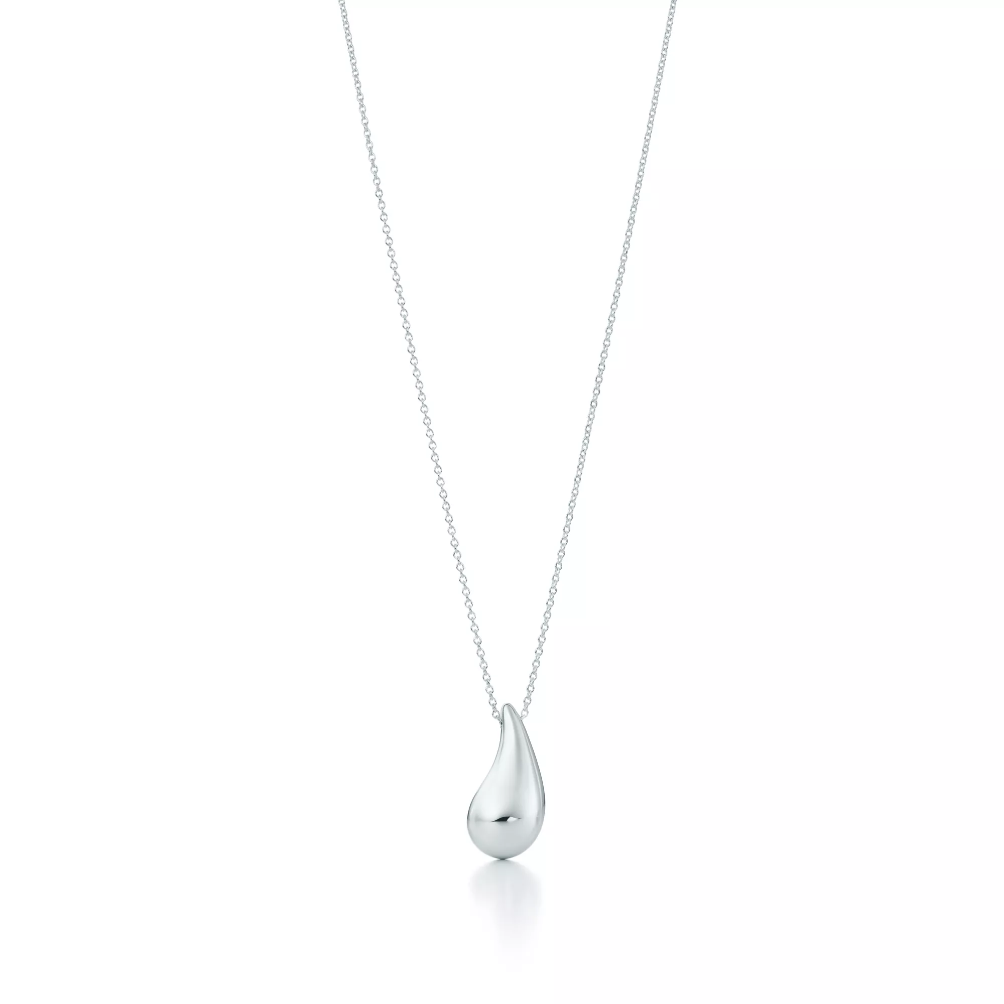 Riporta alla mente una singola goccia di pioggia o una luminosa perla di rugiada mattutina. Pendente in argento. Su catena di 51 cm. Goccia, lunghezza 22 mm. Creazioni originali con copyright di Elsa Peretti®.