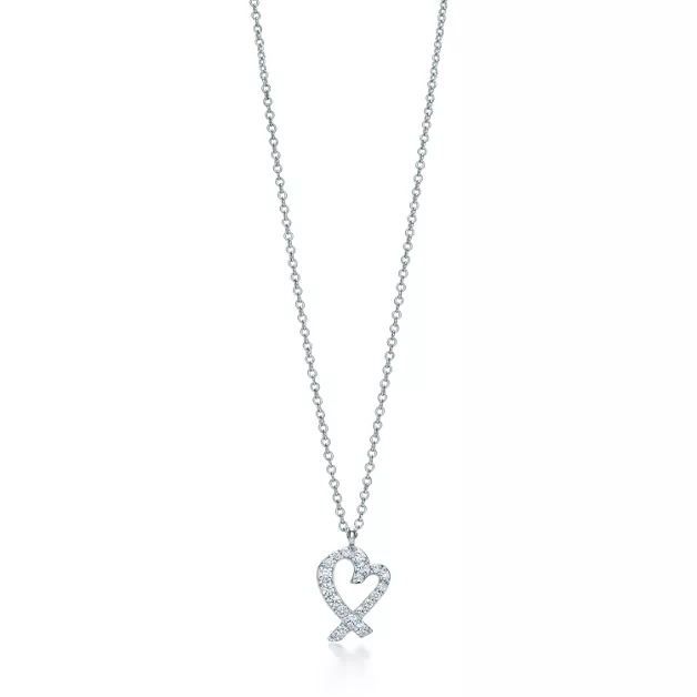 Il simbolo icona dell'amore, in un'interpretazione esclusiva di Paloma Picasso®. Pendente in oro bianco 18 carati con diamanti tondi taglio brillante. Su catena di 406 mm. Modelli originali di Paloma Picasso® coperti da copyright..