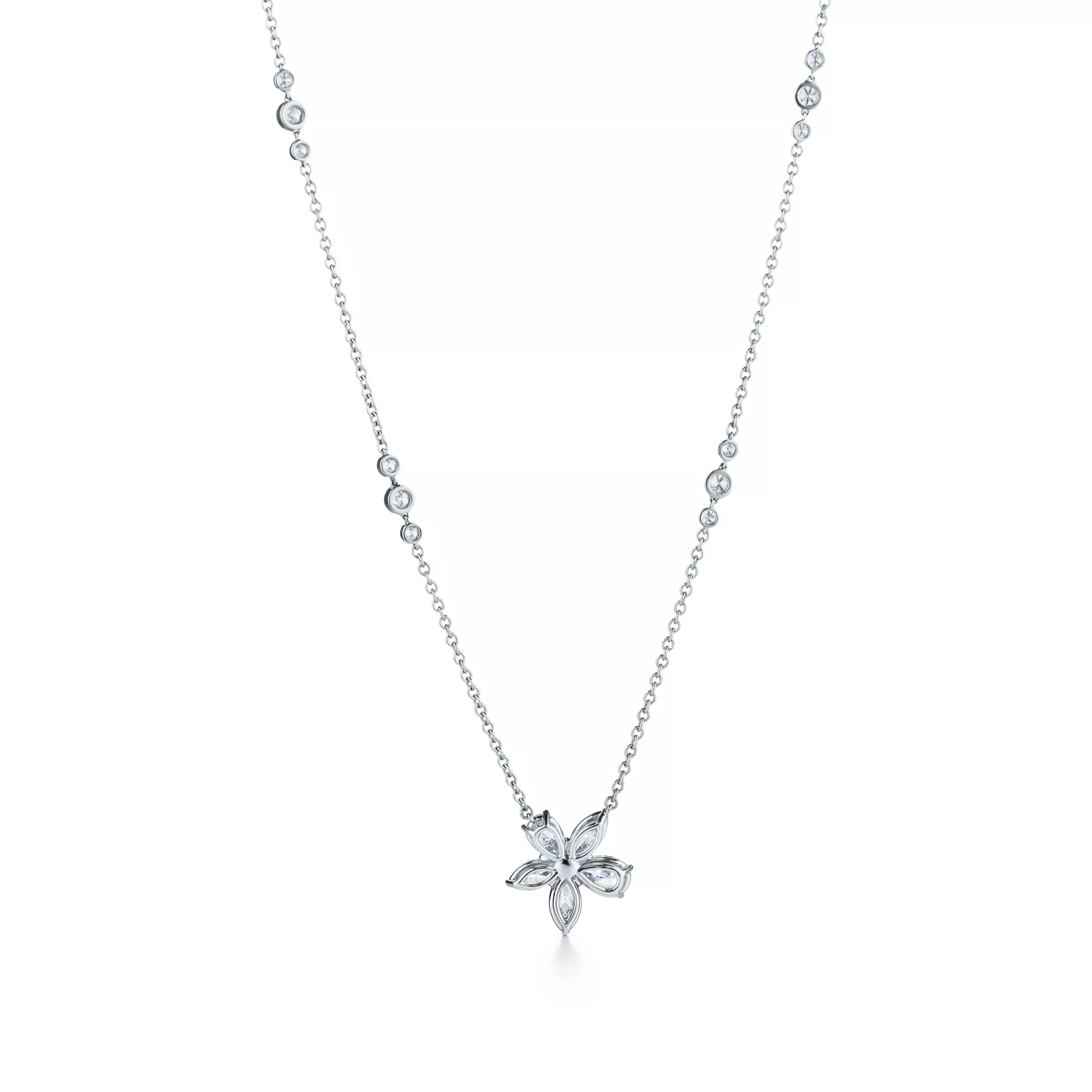 La collezione Tiffany Victoria, ispirata dallo scintillio e dalla luminosità dei nostri straordinari diamanti, è perfetta per una sensibilità romantica. L’elegante semplicità di questo pendente lo rende perfetto sia di giorno che di sera.