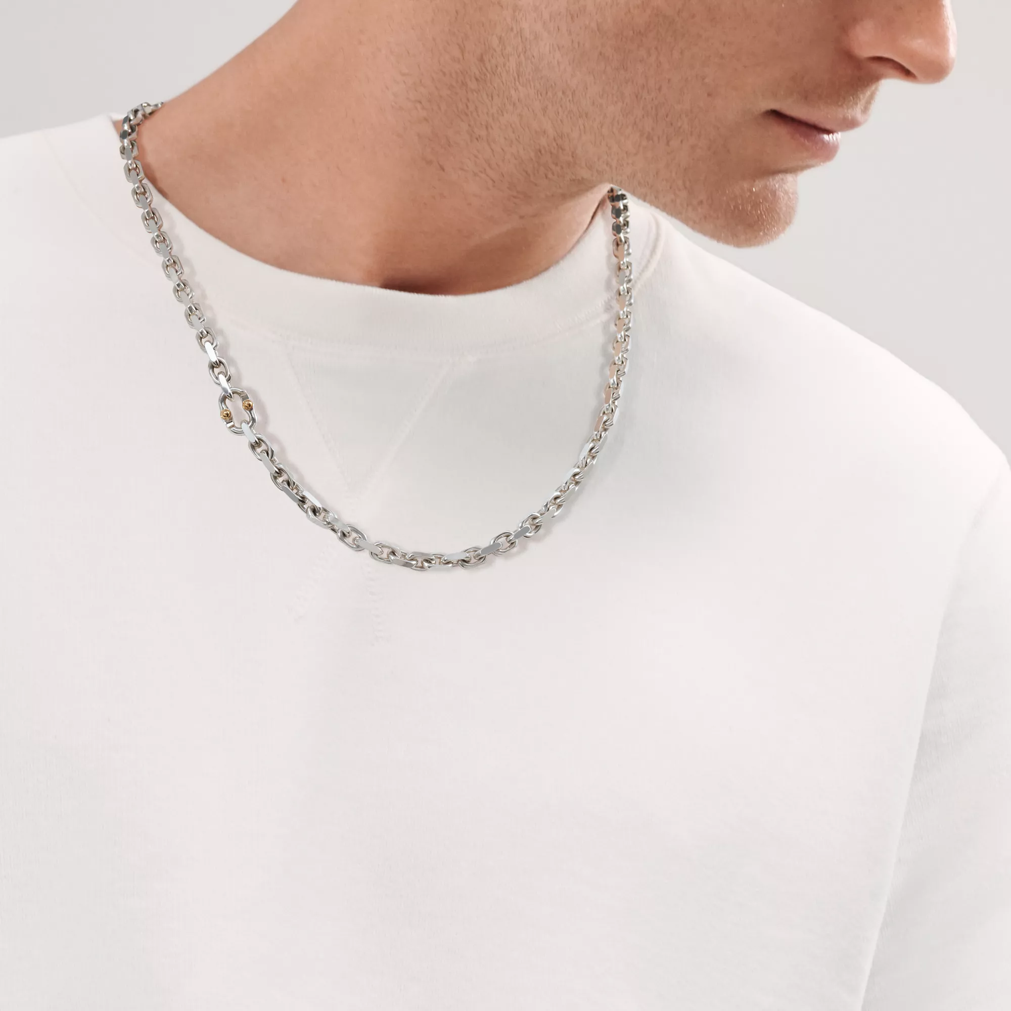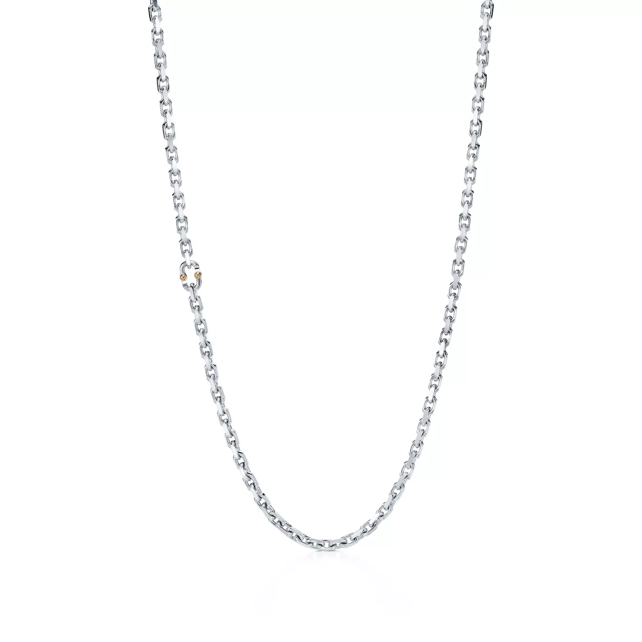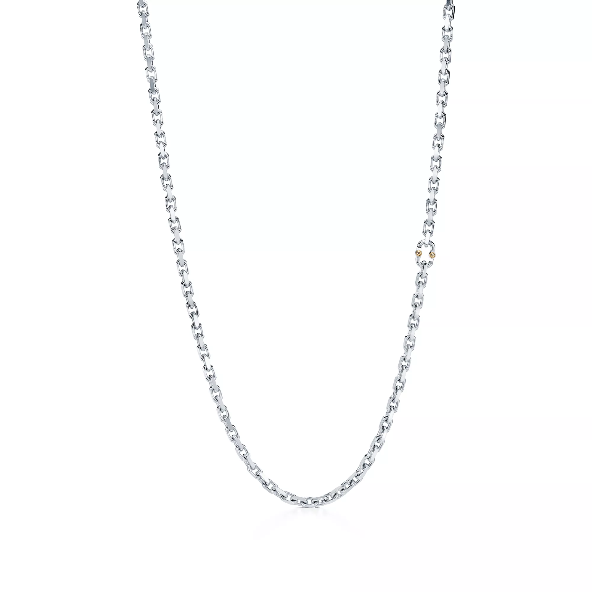 Realizzata con maglie in argento e dettagli in oro, questa collana a catena coglie l’aspetto pratico e funzionale del classico design americano. Caratterizzata da un simbolo ispirato al famoso laboratorio di argenteria di Tiffany, la collezione Tiffany 1837™ Makers rende omaggio alla nostra tradizione di eccellenza artigianale da una prospettiva moderna. Questo modello è magnifico sia indossato da solo sia in abbinamento a un altro gioiello Tiffany.