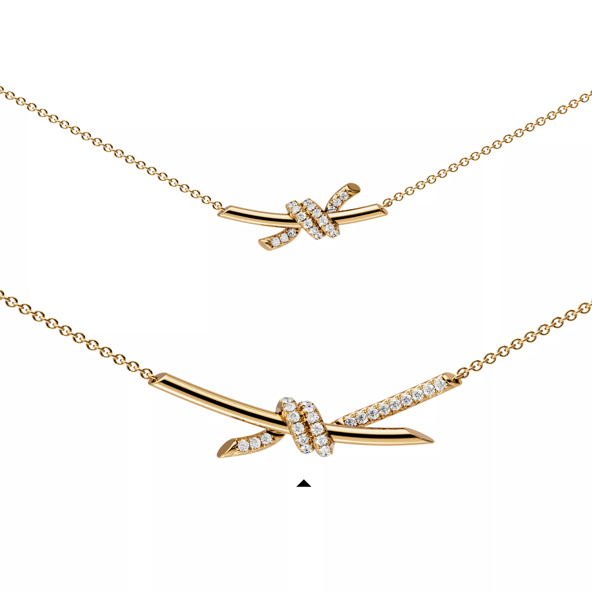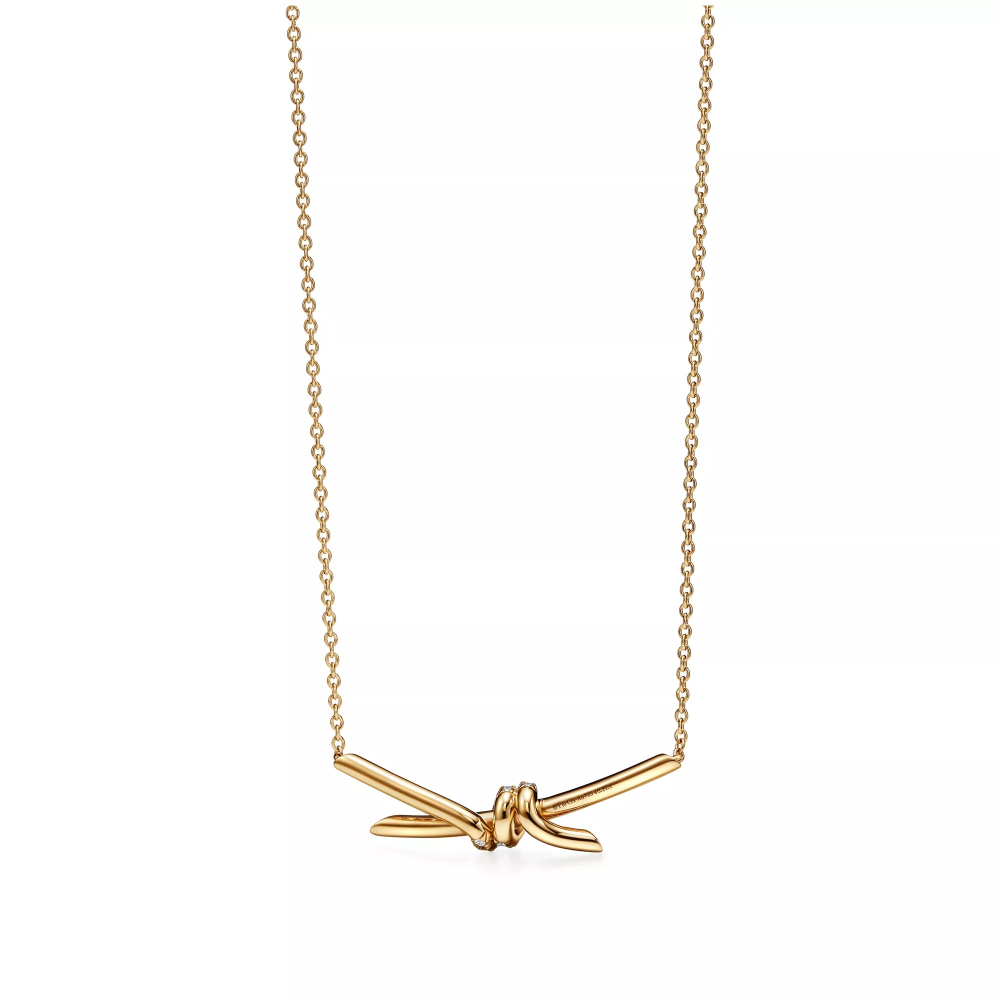 Le estremità intrecciate dell’inconfondibile motivo della collezione Tiffany Knot sono il simbolo della forza dei legami tra le persone. I gioielli della collezione Tiffany Knot creano un equilibrio tra forza ed eleganza e con la loro complessità rivelano un’eccellente maestria artigianale. Questa collana in oro giallo con pavé di diamanti è stata lucidata a mano per farla risplendere in modo straordinario. Ogni diamante taglio brillante, scelto con cura per soddisfare gli elevati standard di Tiffany, è incastonato a mano con angoli precisi per esaltarne al massimo la luminosità. Indossa questa collana da sola oppure abbinala ad altre catene per creare un look eccezionale.