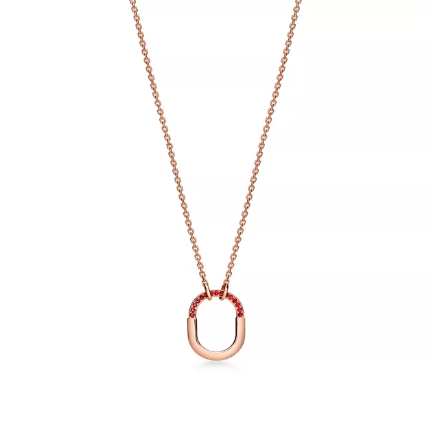 Lock by Tiffany esprime l’inesauribile potere dell’amore e si ispira a un lucchetto degli Archivi Tiffany che risale al 1883. Pensata per tenere al sicuro ciò che è per noi più prezioso, Lock by Tiffany è un simbolo universale di quello che conta di più. Per il massimo effetto, abbina questo pendente in oro rosa e rubini ad altri gioielli della collezione.