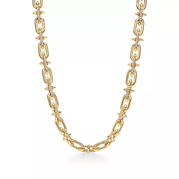La collezione Tiffany Titan by Pharrell Williams esprime il potere della ribellione come motore della creatività, portando avanti la tradizione della Maison nel collaborare con artisti visionari. Questi gioielli traggono ispirazione da Poseidone e dal suo tridente. Le punte di tridente e le maglie delicatamente sagomate realizzate in oro creano un effetto straordinario. In questa collezione, i diamanti consentono alla luce di penetrare da ogni angolazione, esaltando al massimo la luminosità.