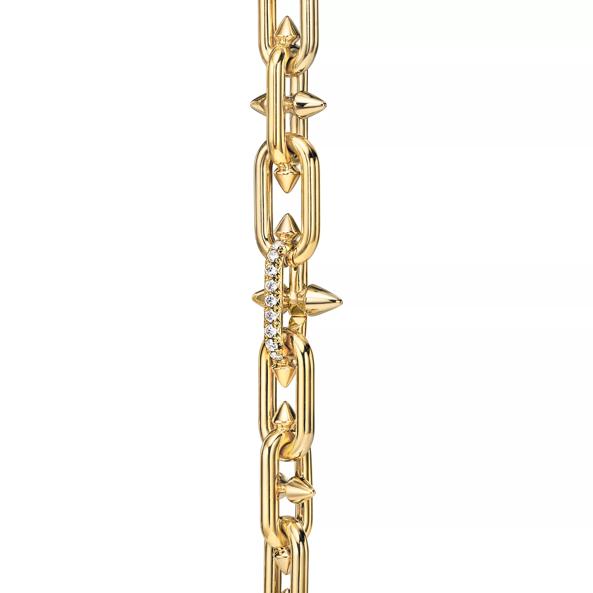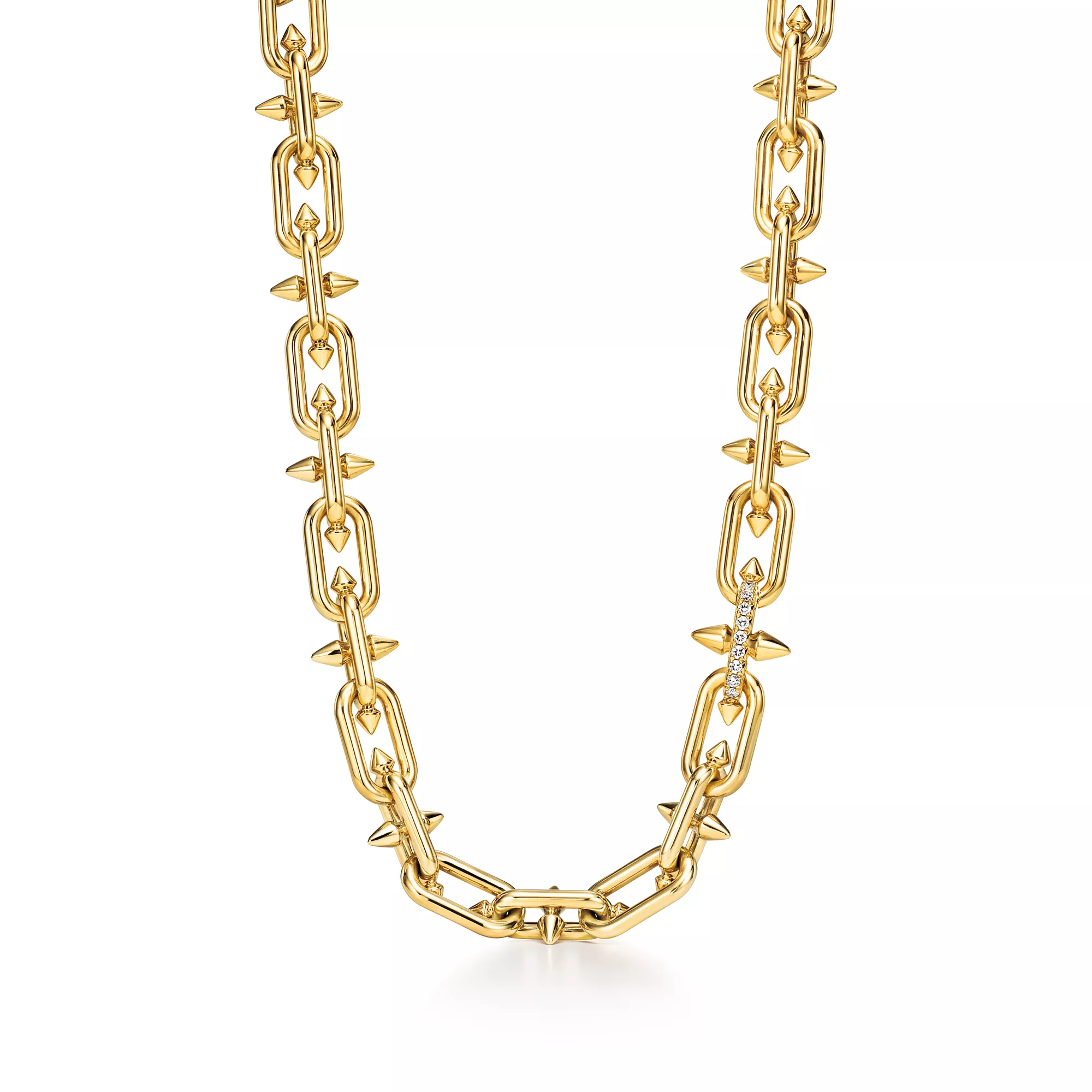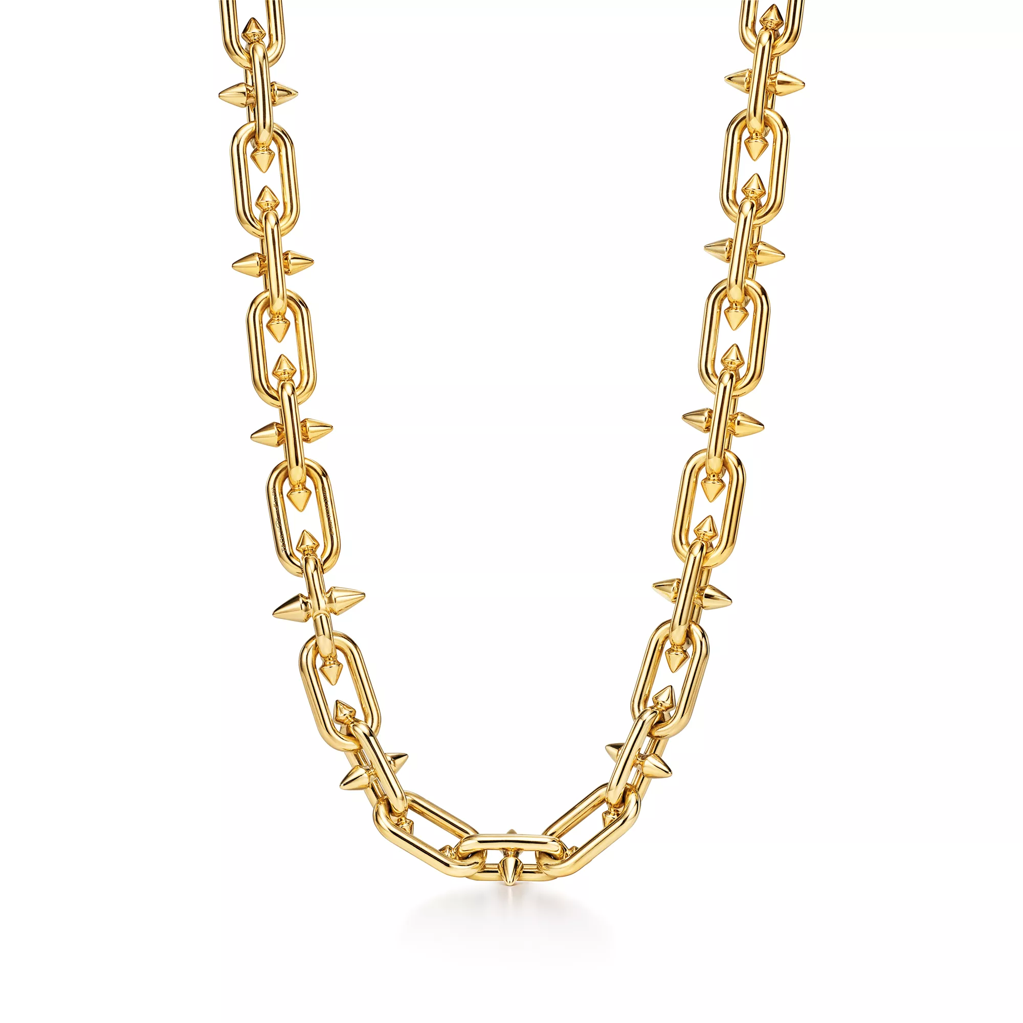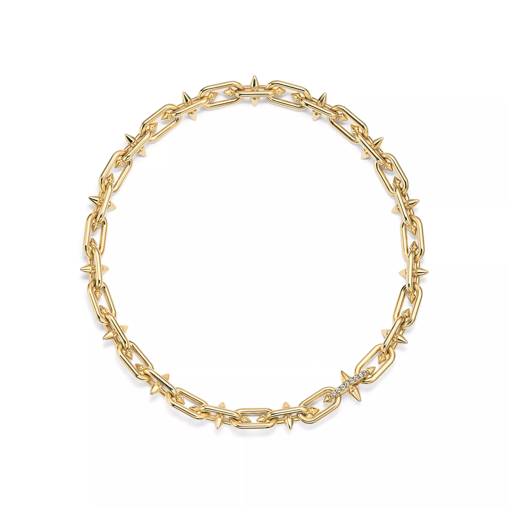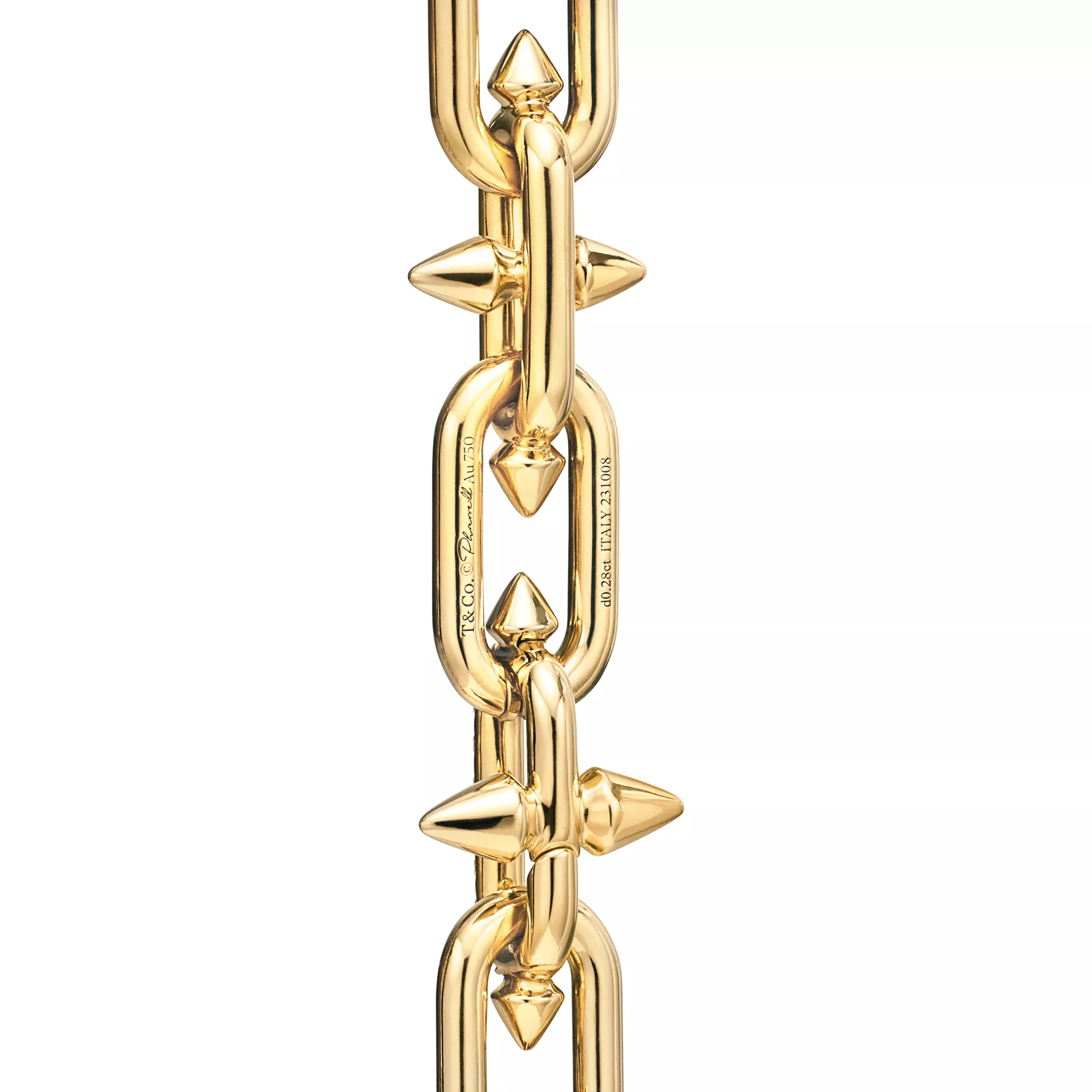 La collezione Tiffany Titan by Pharrell Williams esprime il potere della ribellione come motore della creatività, portando avanti la tradizione della Maison nel collaborare con artisti visionari. Questi gioielli traggono ispirazione da Poseidone e dal suo tridente. Le punte di tridente e le maglie delicatamente sagomate realizzate in oro creano un effetto straordinario. In questa collezione, i diamanti consentono alla luce di penetrare da ogni angolazione, esaltando al massimo la luminosità.