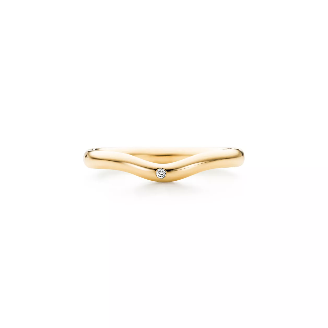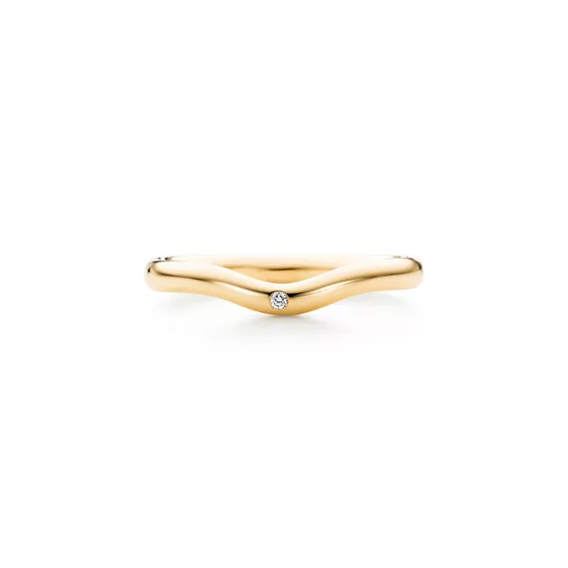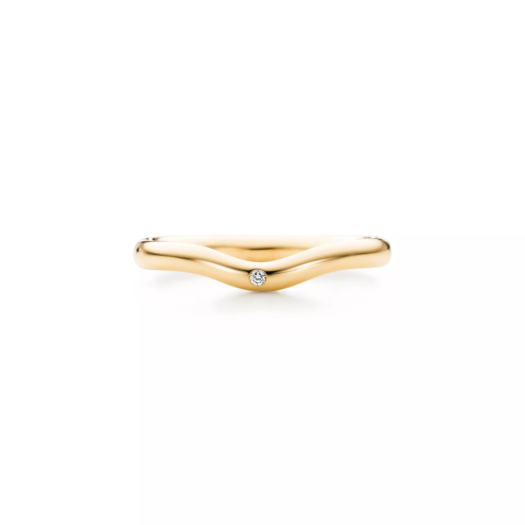 Un diamante taglio brillante dà una splendida luminosità allo stile scultoreo di Elsa Peretti. Fede in oro 18k con diamante, altezza 2 mm. Modelli originali di Elsa Peretti coperti da copyright.