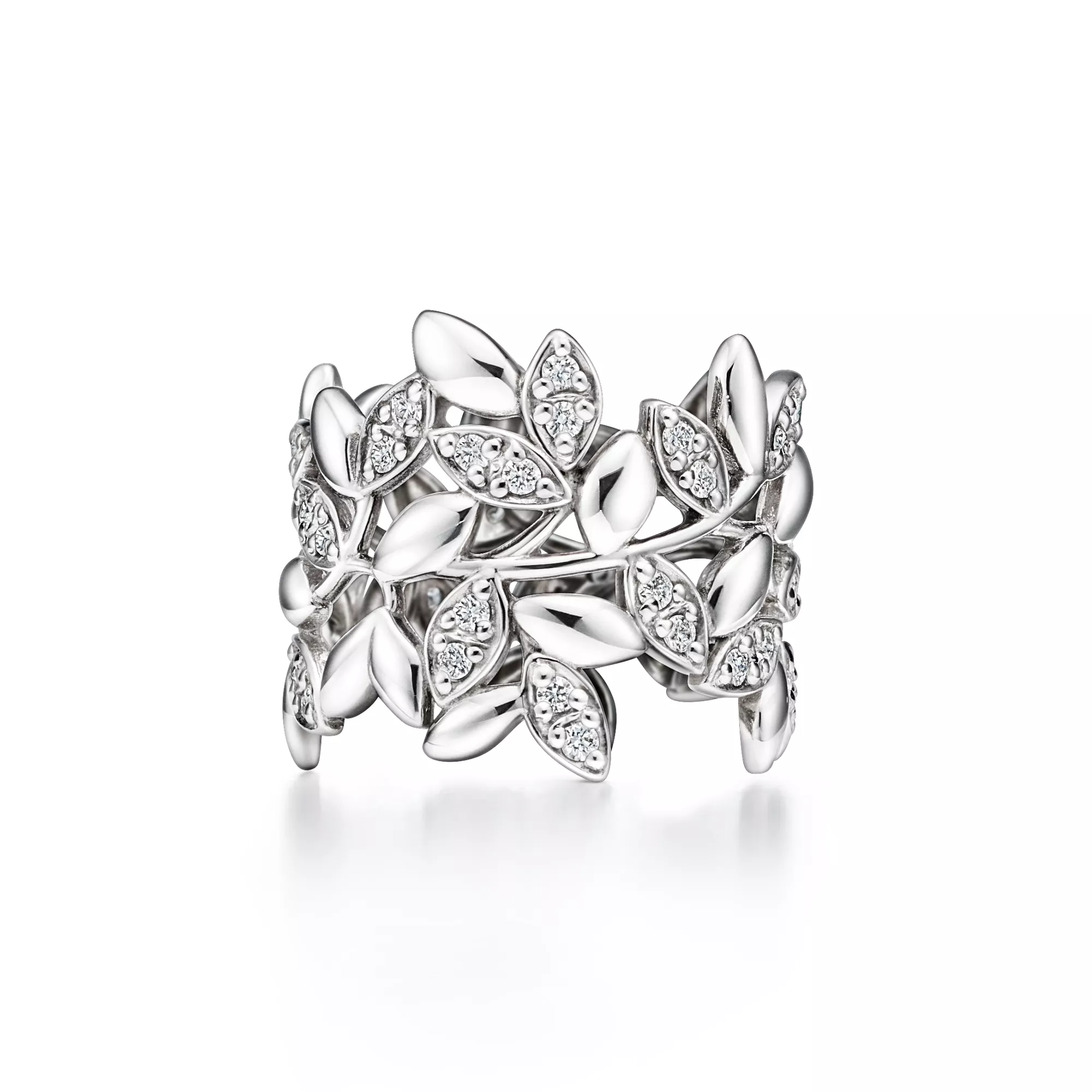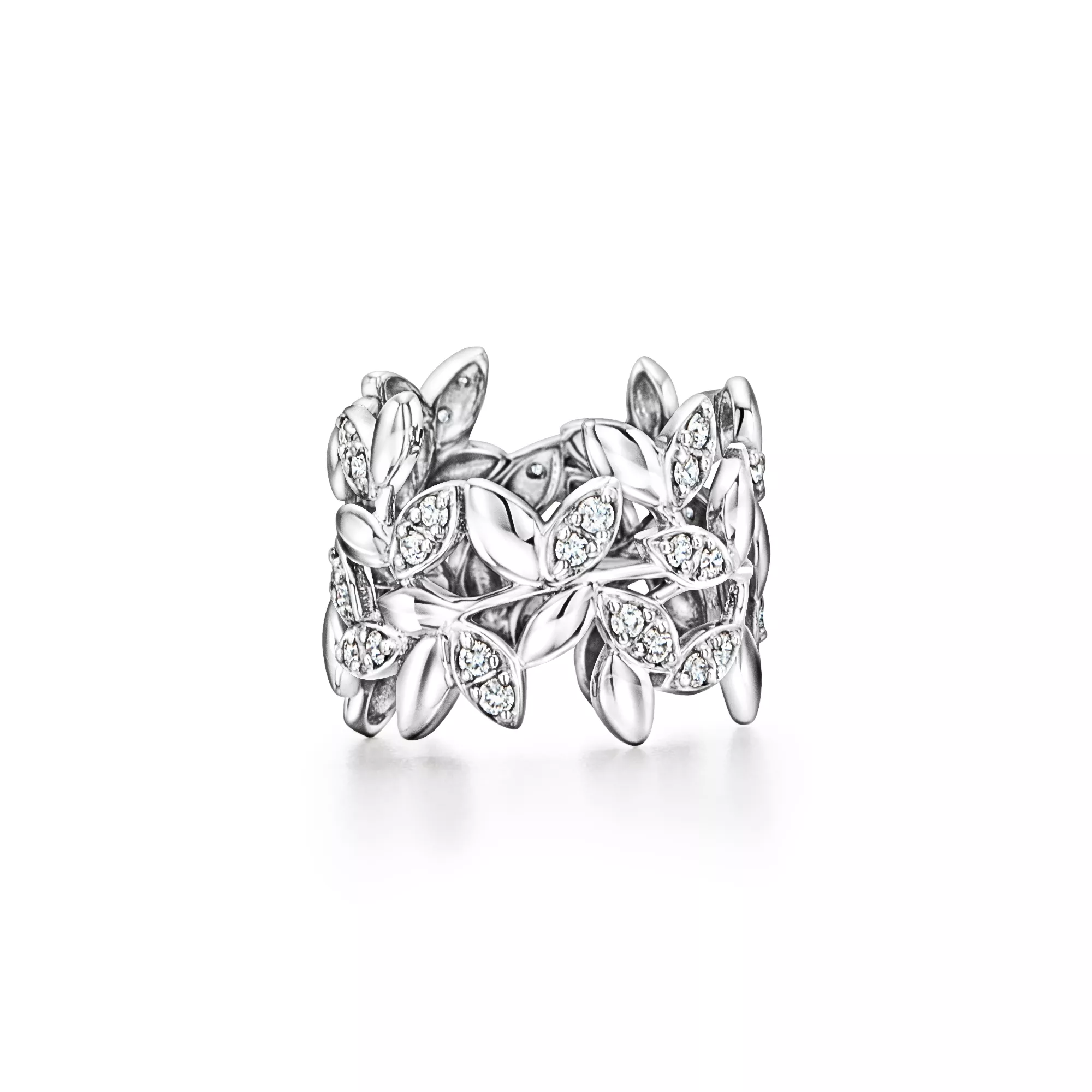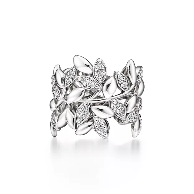 Fedina Olive Leaf in oro bianco con diamanti