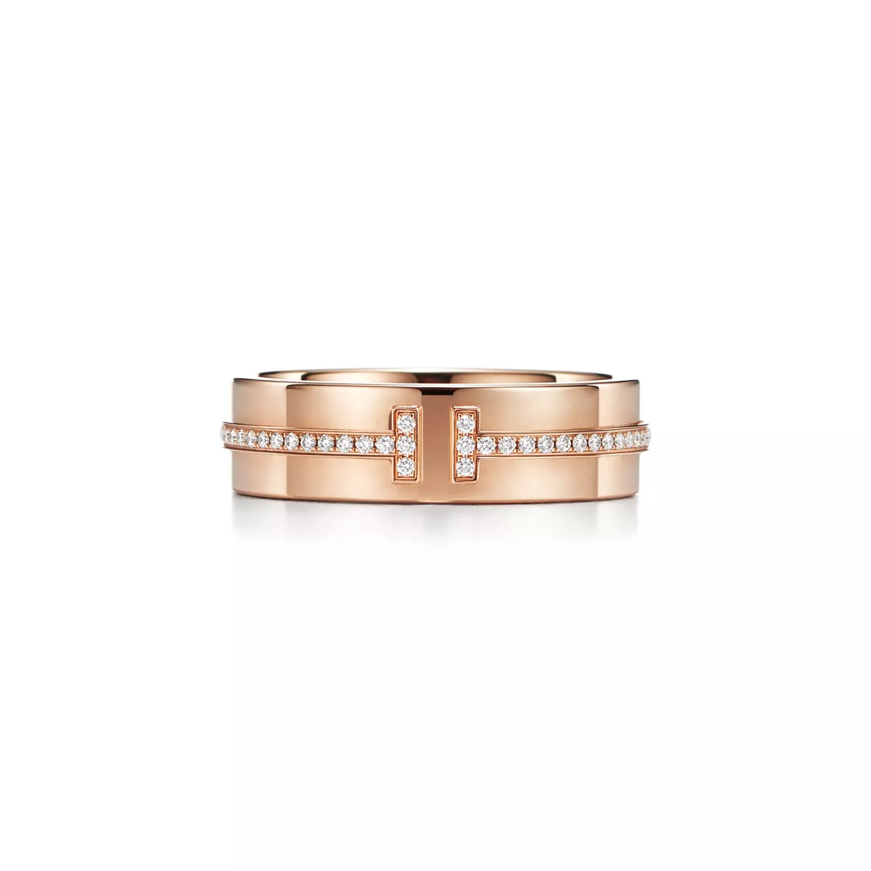 Collezione Tiffany T Anello a fascia con diamanti in oro rosa