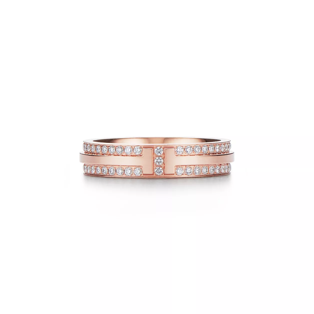 Collezione Tiffany T Anello con pavé di diamanti in oro rosa