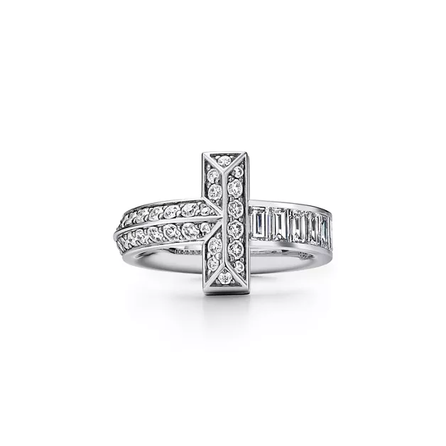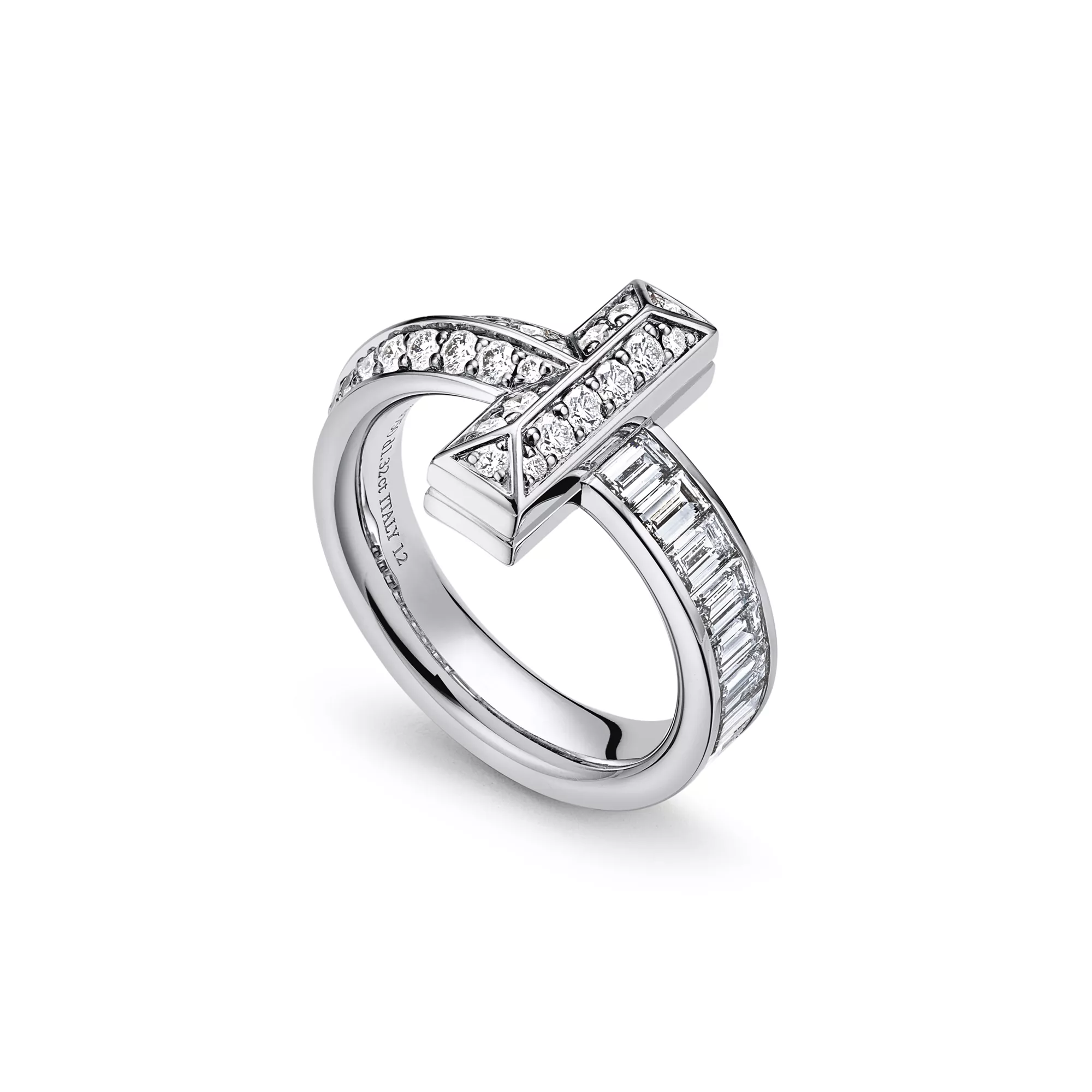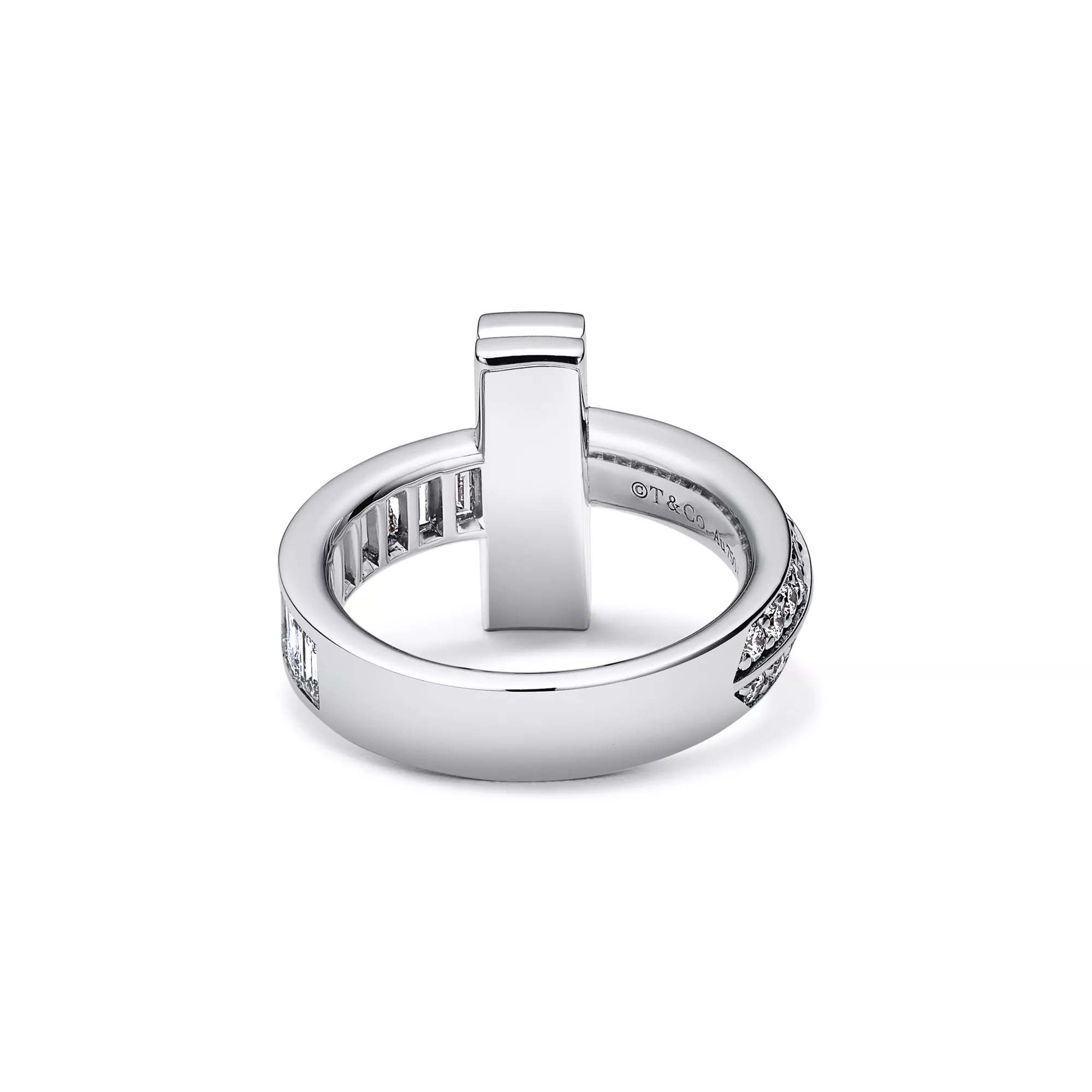 Collezione Tiffany T Anello T1 in oro bianco con diamanti pavé e taglio baguette