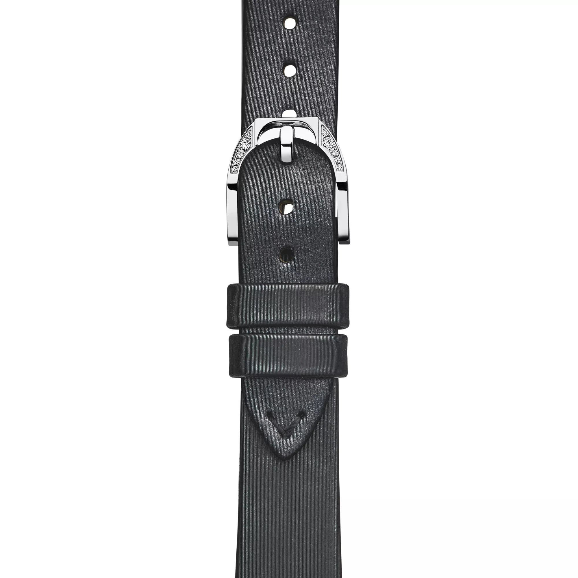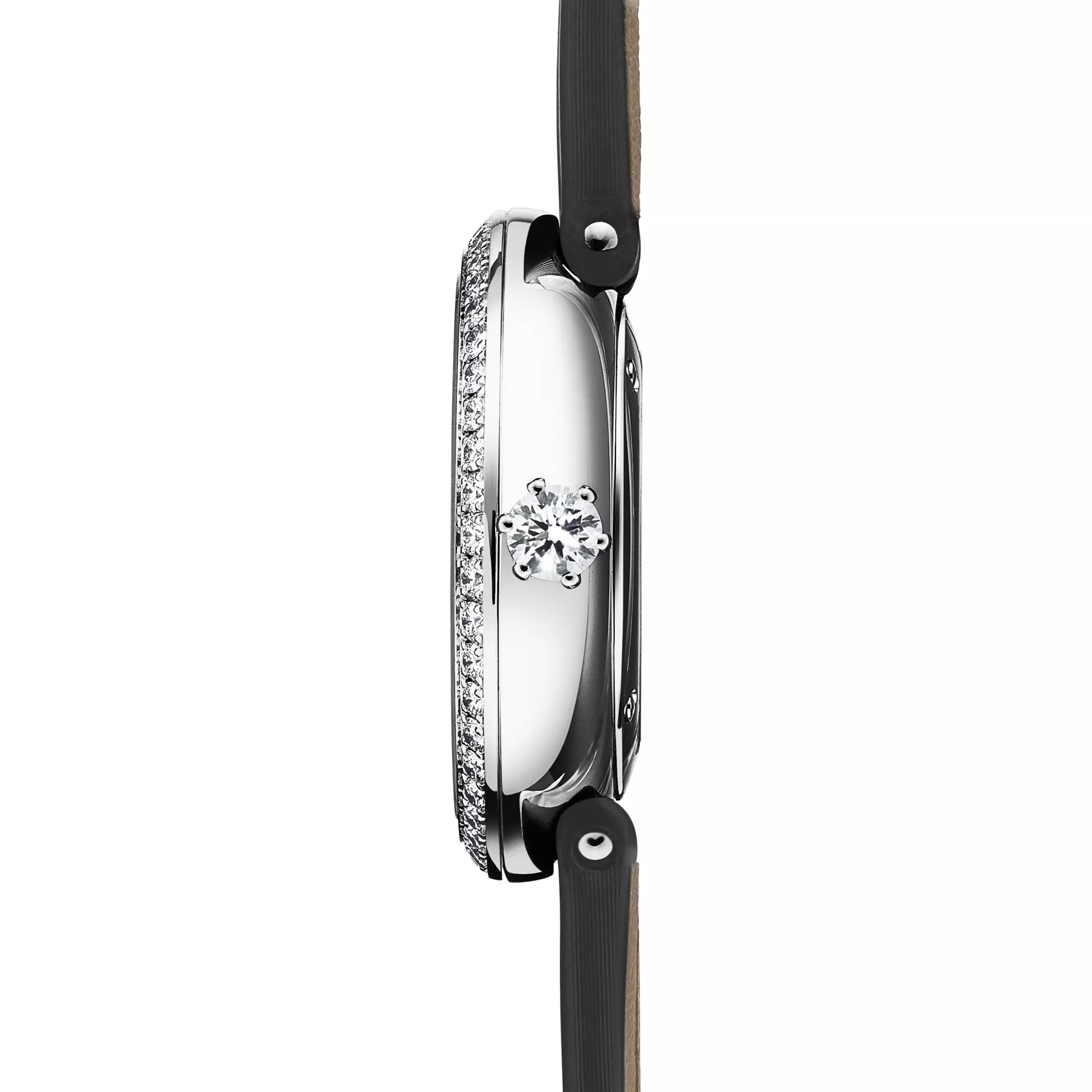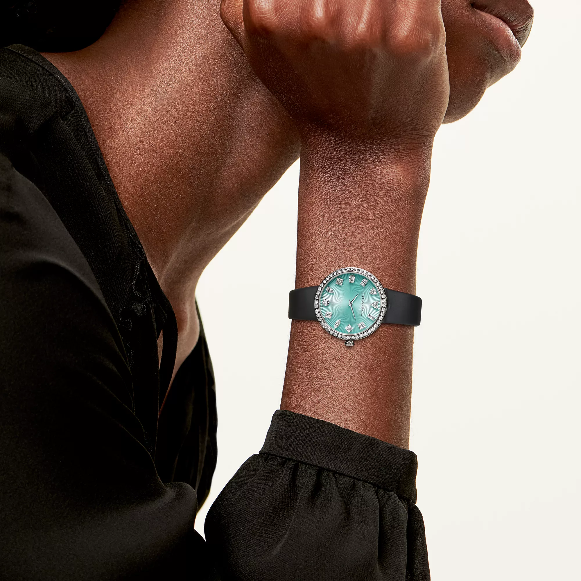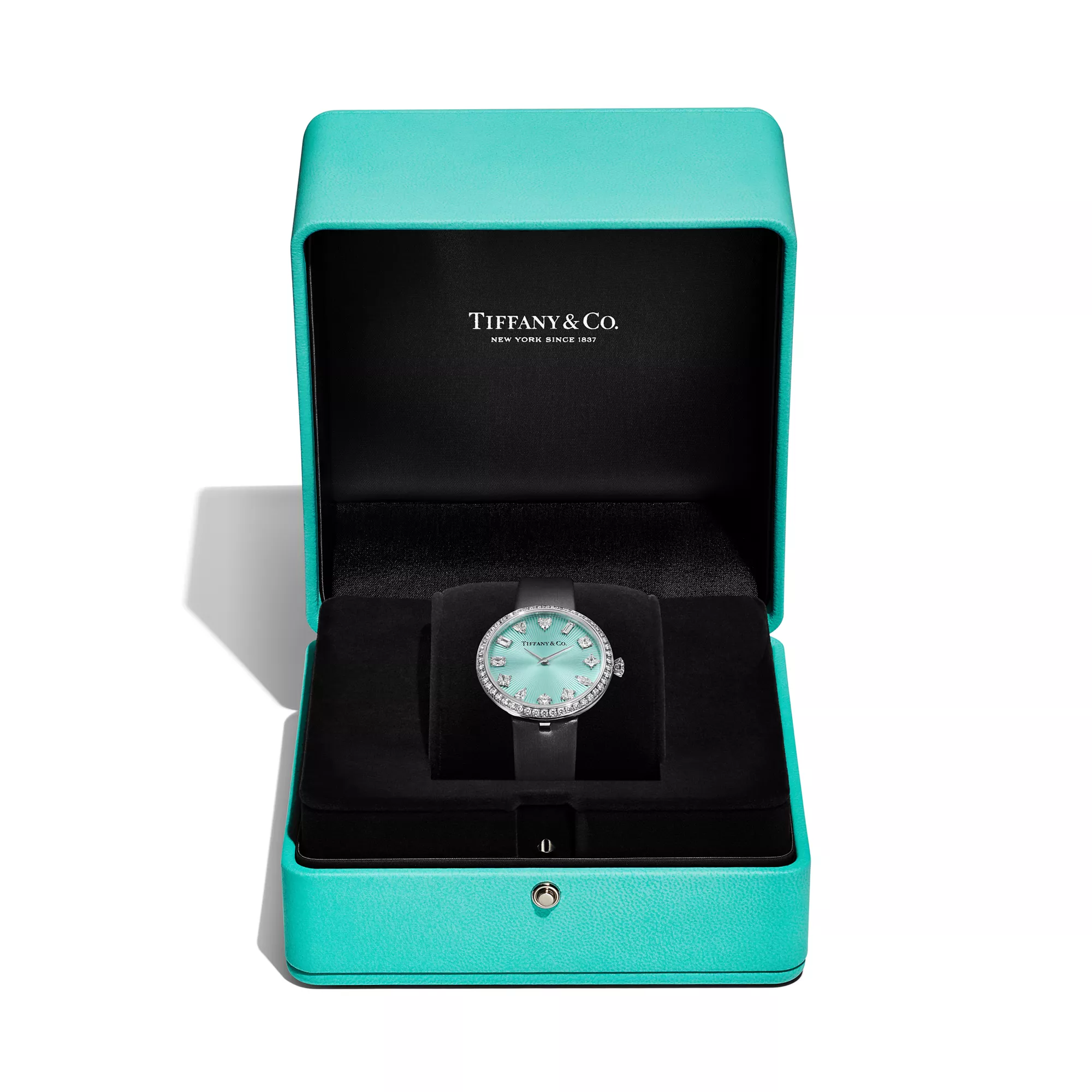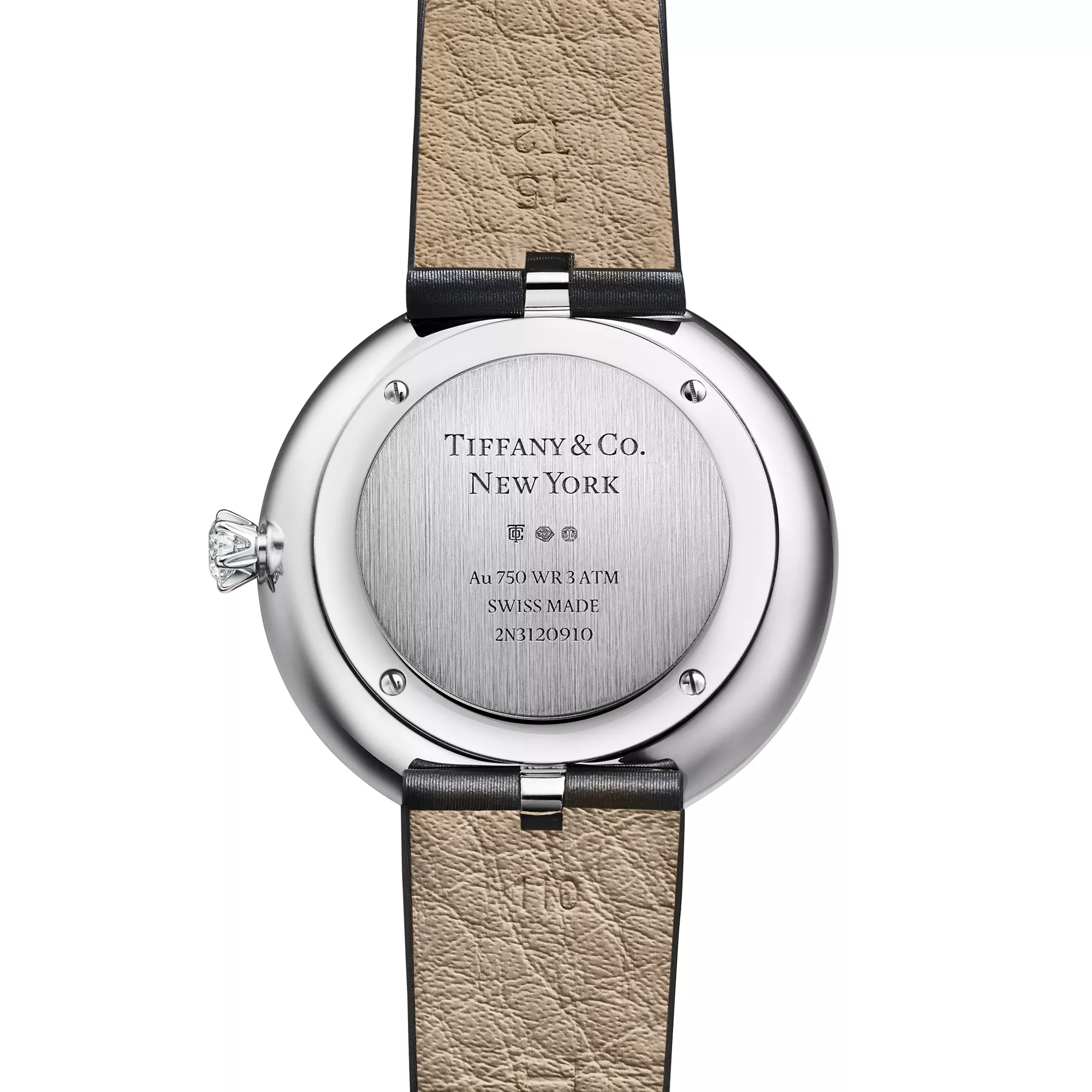 Gli orologi della collezione Tiffany Eternity ci ricordano di vivere il presente. Ispirato a una serie di pubblicità vintage di Tiffany & Co. degli anni ’60 e ’70, il quadrante ha un diamante di taglio diverso per ogni ora: taglio brillante, baguette, cuscino, Tiffany True®, marquise, Asscher, a cuore, a goccia, ovale, smeraldo, triangolare e princess. La corona dell’orologio è ispirata all’anello di fidanzamento Tiffany® Setting con l’iconica montatura a sei griffe, che si combina meravigliosamente con i luminosi diamanti taglio brillante che incorniciano la cassa. Questo orologio in oro bianco è caratterizzato da un cinturino in pelle di vitello spazzolata grigio antracite con diamanti sulla fibbia in oro bianco. Questo stupendo esempio di maestria artigianale rende omaggio alla nostra tradizione di fornitori dei diamanti più belli del mondo: ieri, oggi e sempre.