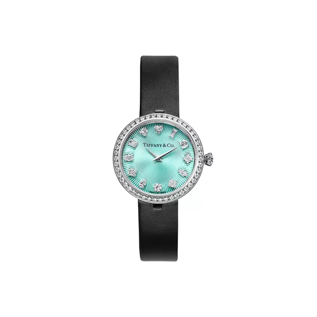 Gli orologi della collezione Tiffany Eternity ci ricordano di vivere il presente. Ispirato a una serie di pubblicità vintage di Tiffany & Co. degli anni ’60 e ’70, il quadrante ha un diamante di taglio diverso per ogni ora: taglio brillante, baguette, cuscino, Tiffany True®, marquise, Asscher, a cuore, a goccia, ovale, smeraldo, triangolare e princess. La corona dell’orologio è ispirata all’anello di fidanzamento Tiffany® Setting con l’iconica montatura a sei griffe, che si combina meravigliosamente con i luminosi diamanti taglio brillante che incorniciano la cassa. Questo orologio in oro bianco è caratterizzato da un cinturino in pelle di vitello spazzolata grigio antracite con diamanti sulla fibbia in oro bianco. Questo stupendo esempio di maestria artigianale rende omaggio alla nostra tradizione di fornitori dei diamanti più belli del mondo: ieri, oggi e sempre.