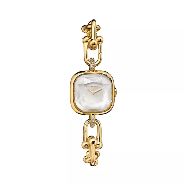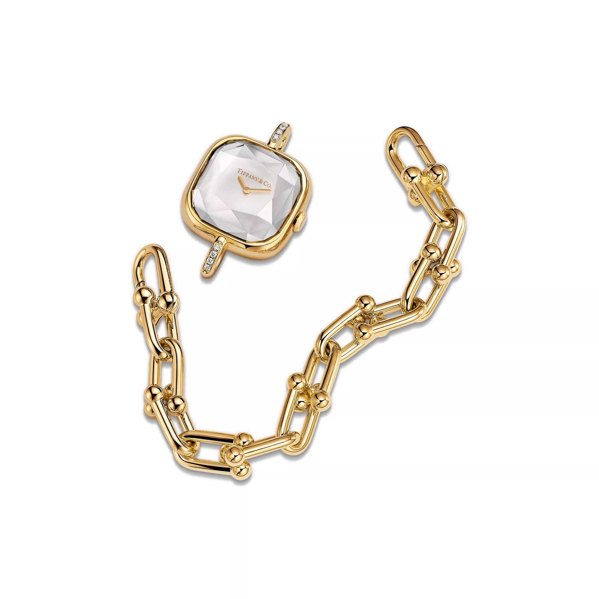 La collezione HardWear by Tiffany è un’espressione della forza dirompente dell’amore. Ispirata a un iconico bracciale del 1962 conservato negli Archivi della Maison, la collezione esalta la forza della resilienza e la capacità di sentirsi liberi. Realizzato a mano in Svizzera, ogni orologio HardWear by Tiffany è caratterizzato dalle iconiche maglie industriali e diamanti taglio brillante. Questo orologio in oro giallo si distingue per i diamanti e il quadrante in madreperla bianca. La chiusura nascosta crea un effetto di continuità, mentre la sfaccettatura del cristallo zaffiro evoca la forma inconfondibile del leggendario Tiffany Diamond. È una splendida dichiarazione di stile sia indossato da solo che abbinato ai bracciali della collezione HardWear by Tiffany.